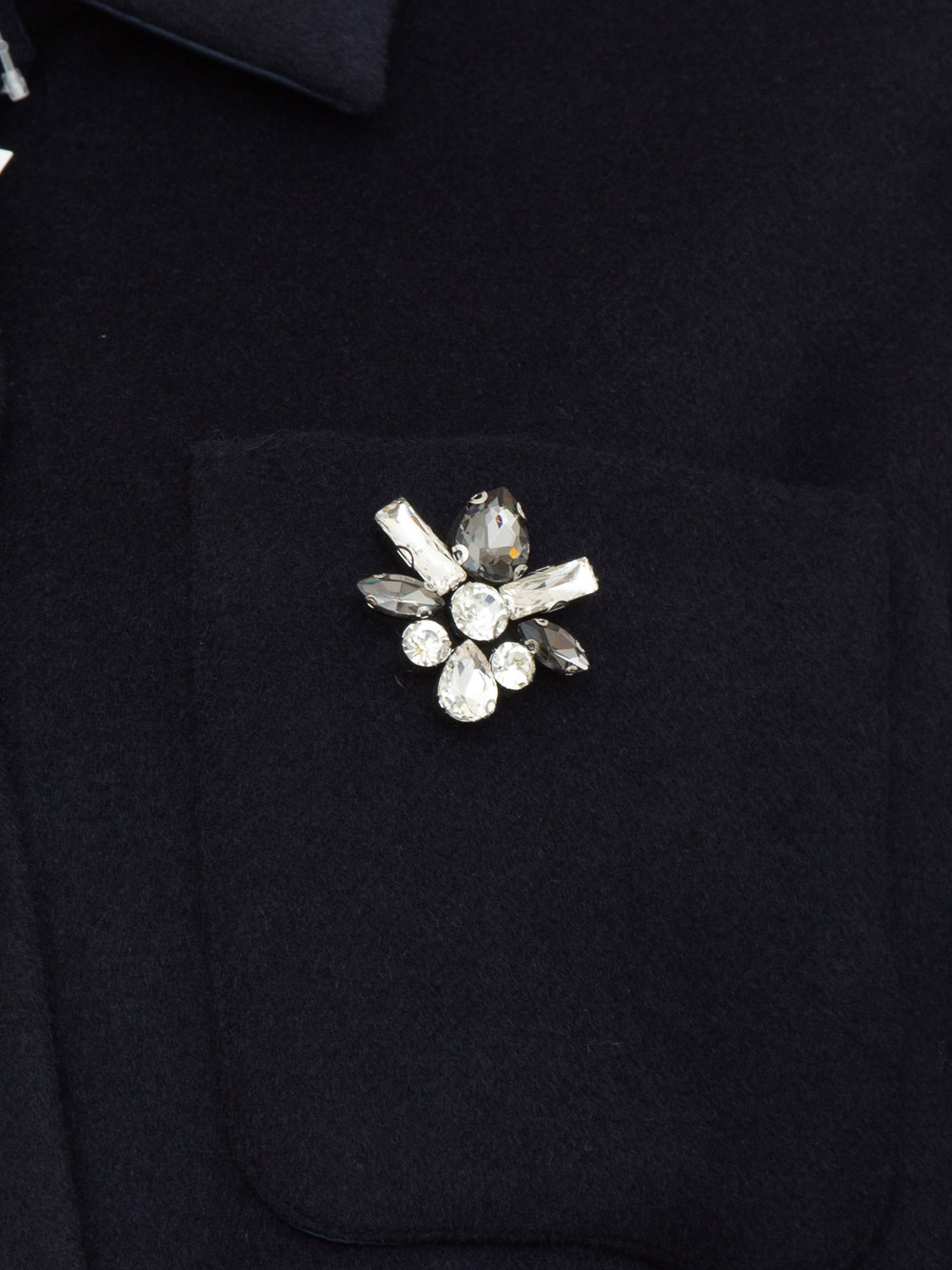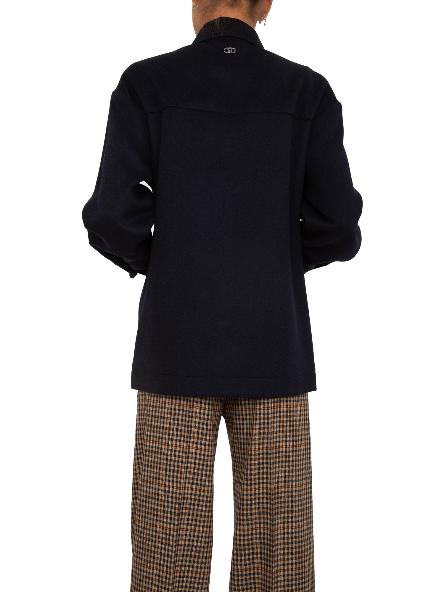 Giacca camicia Liu Jo in misto flanella blu con spilla gioiello