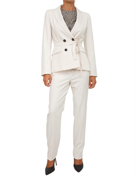 Brand: EMME MARELLAGiacca doppiopetto Emme Marella realizzata in flanella con cintura in vita per valorizzare la silhouette. Fit sfiancato e femminile, rever a lancia e tasche laterali con patta. Capo foderato, ideale da abbinare ai pants coordinati per un look elegante e sofisticato. La modella è alta 1.72 e indossa la taglia 40.