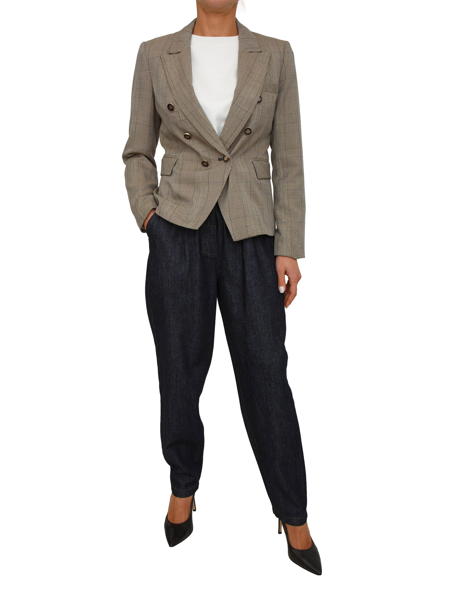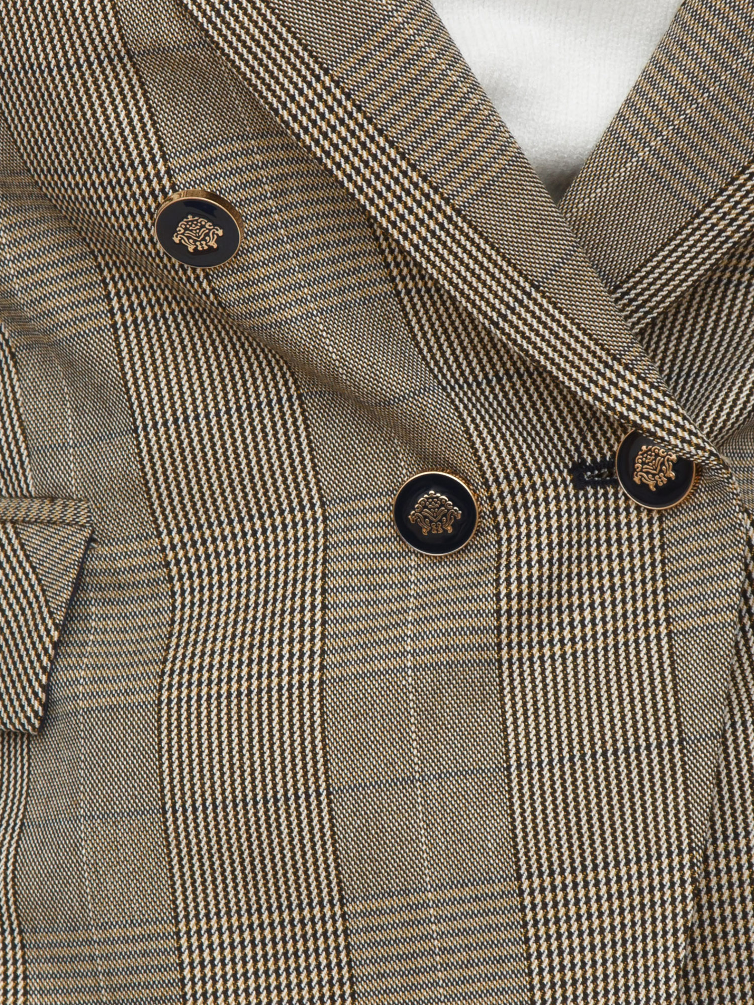 Brand: KOCCAStupenda giacca doppiopetto Ilyassa firmata Kocca realizzata in misto viscosa con motivo tartan beige. Design caratterizzato da vestibilità sfiancata per esaltare la tua femminilità, arricchita bottoni neri e dorati che donano un tocco glam. La modella è alta 1.72 e indossa la taglia S.