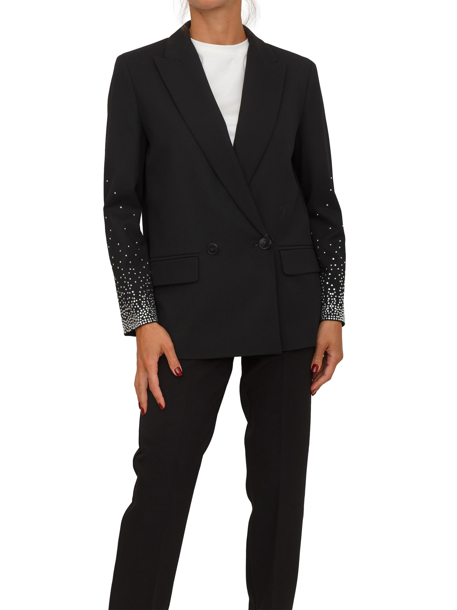 Giacca doppiopetto Marella cristalli su maniche in viscosa nera