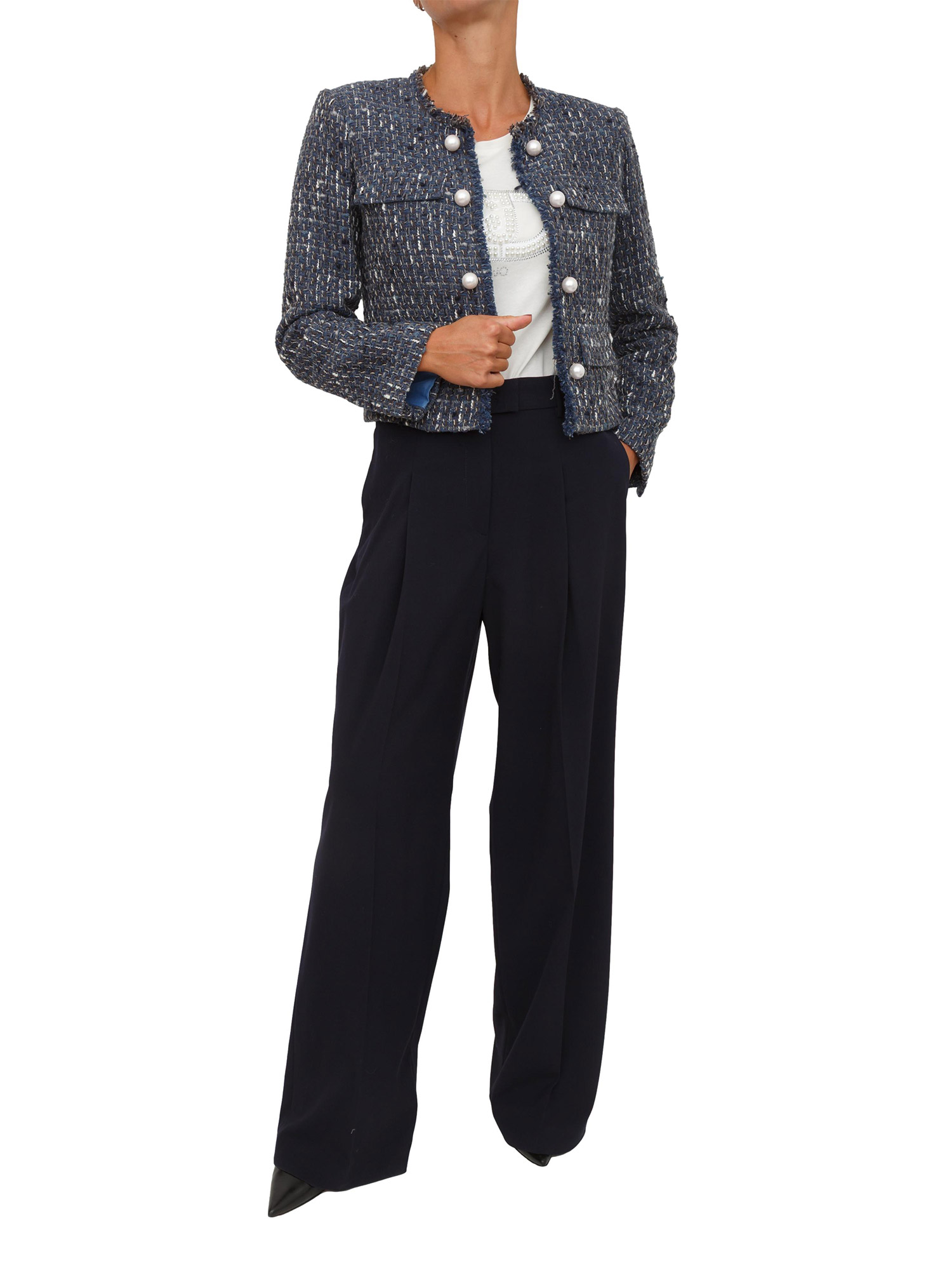 Giacca monopetto Liu Jo donna in bouclÉ blu con perle
