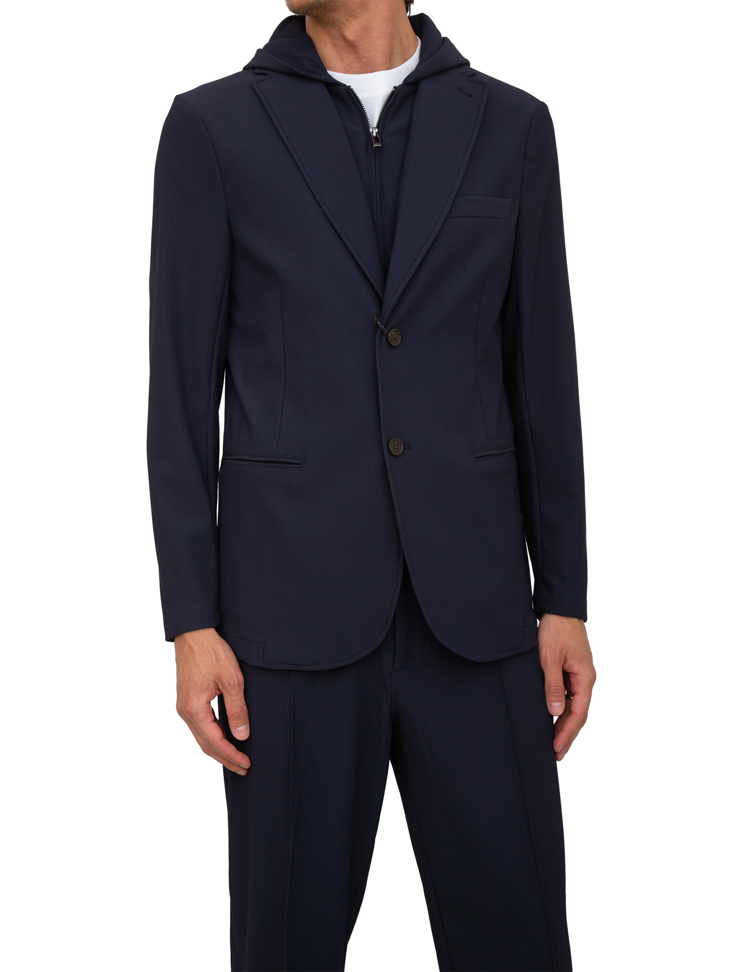 Giacca monopetto uomo Emporio Armani in nylon blu con davantino e cappuccio staccabili