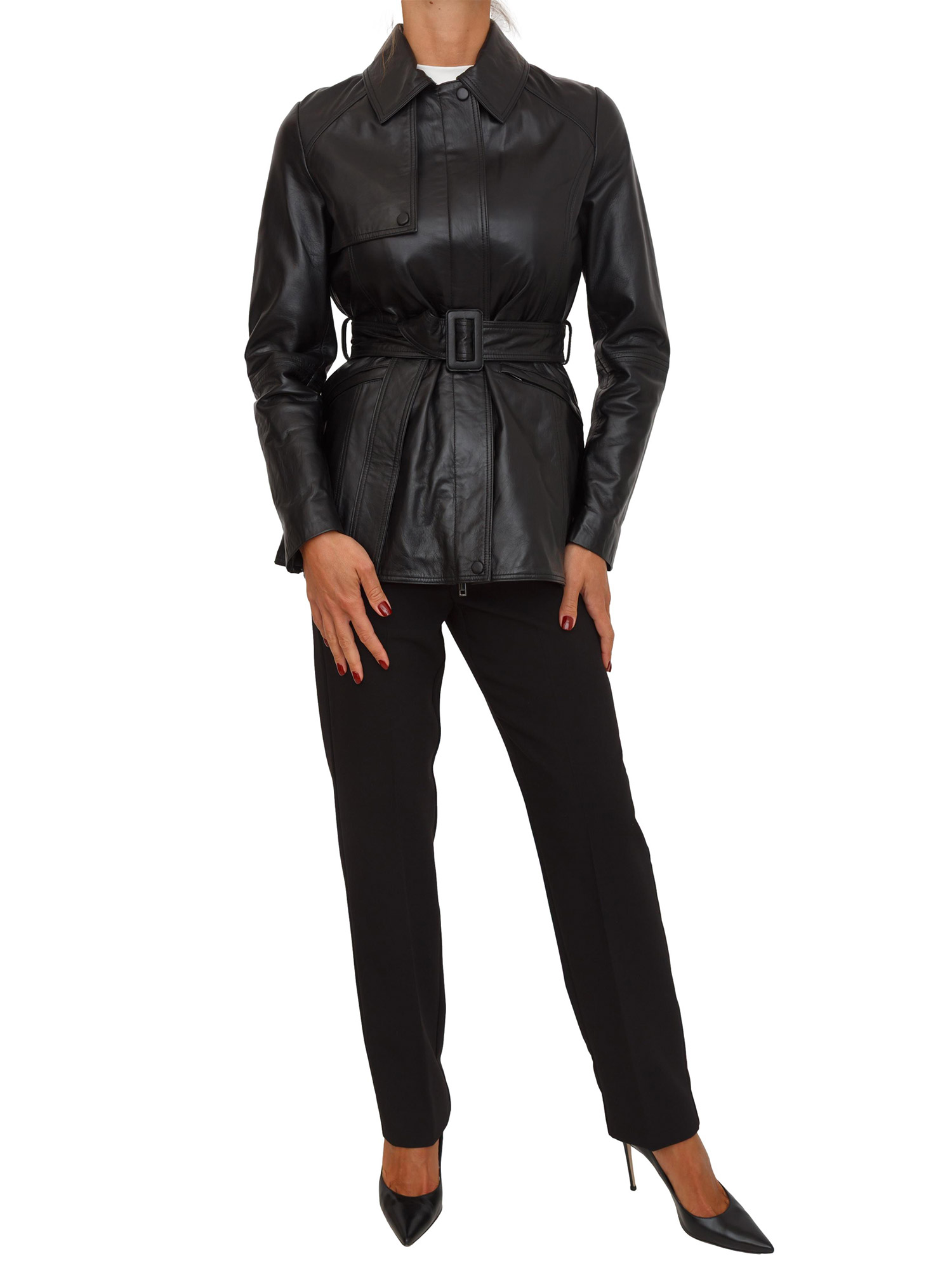 Brand: MARELLAAttitude dichiaratamente metropolitana per la giacca in pelle Marella con collo a camicia e bavoletta sulla spalla. Da stringere in vita con la cintura coordinata in un gioco di volumi da personalizzare. Chiusura con zip nascosta. La modella è alta 1.72 e indossa la taglia 40.