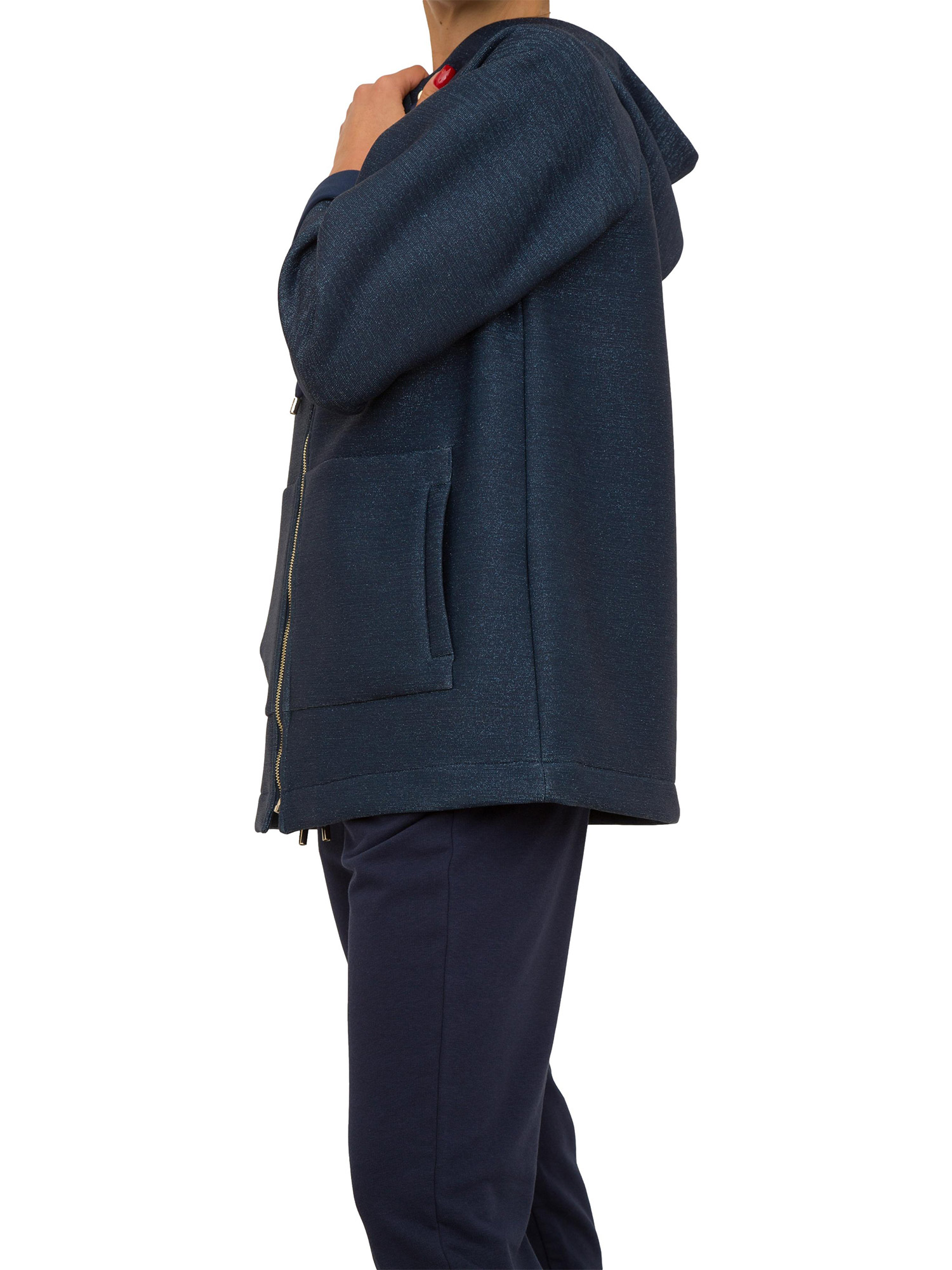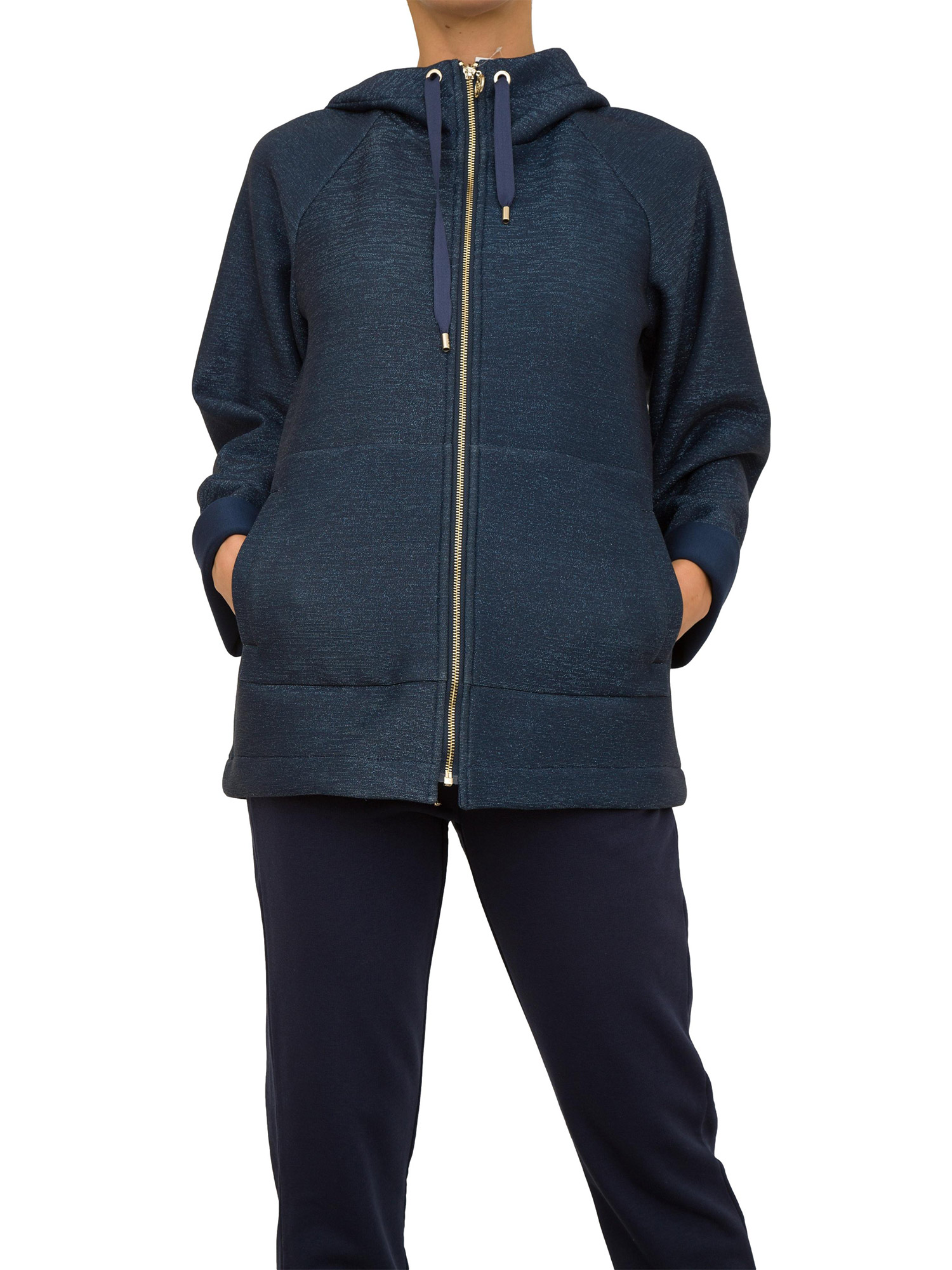 Brand: LIU JOGiacca in scuba e lurex[and]reg; Liu-jo, cappuccio con coulisse, maniche lunghe con risvolto al fondo, tasche sui lati, chiusura con zip e tirazip logata.La modella è alta 1.72 e indossa la taglia S.
