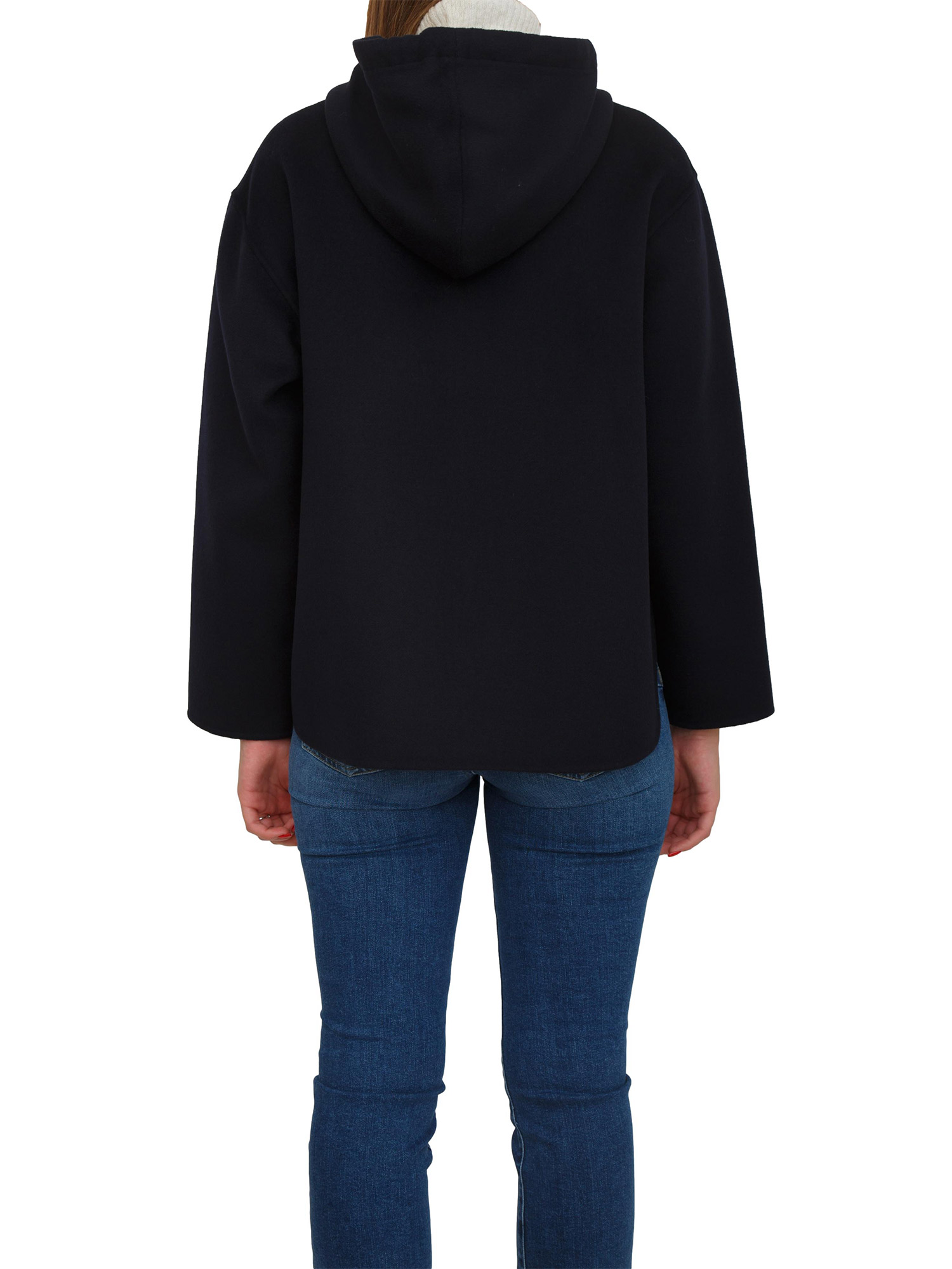 Brand: MAX MARAGiaccone Mina di Max Mara dalla linea dritta con cappuccio a coulisse. Realizzato in doppio drap di lana, cashmere e seta con spalla scesa e chiusura frontale con zip. Sfoderata con fondo stondato e taschino sul petto. La modella è alta 1.77 e indossa la taglia 40.