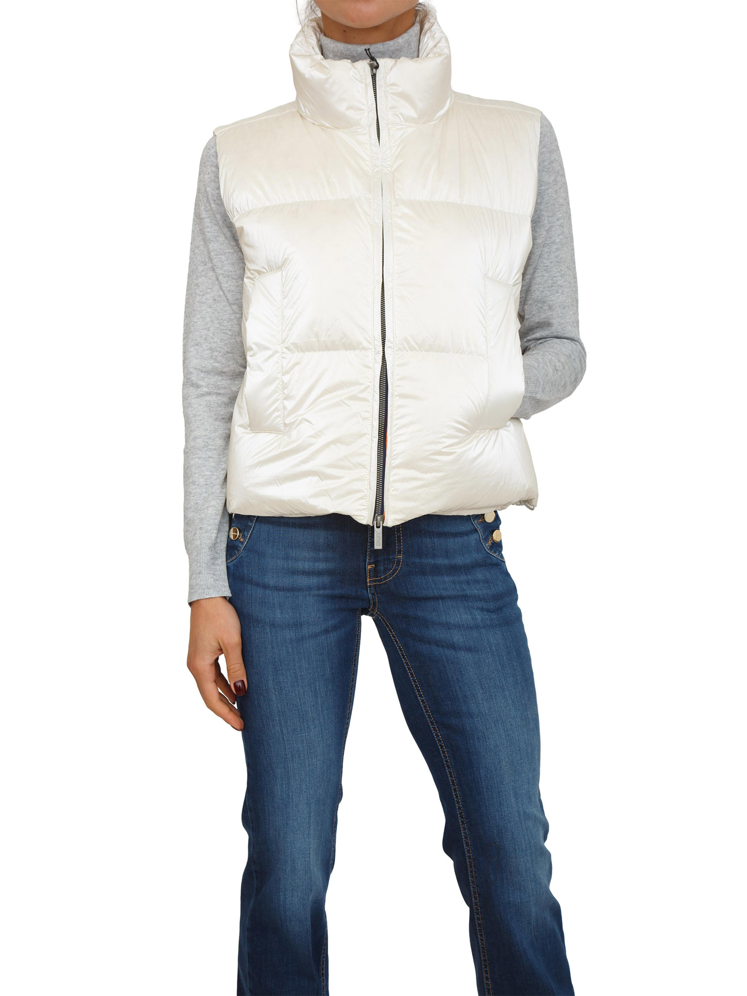 Brand: K-WAYGilet imbottito donna Thille K-Way dal look sports-glam con un luminoso tessuto trapuntato effetto perla. Dotato di collo alto avvolgente, chiusura full zip e imbottitura in piuma Molina per garantire un’ottima protezione dal freddo e un peso contenuto. La modella è alta 1.72 e indossa la taglia 8.