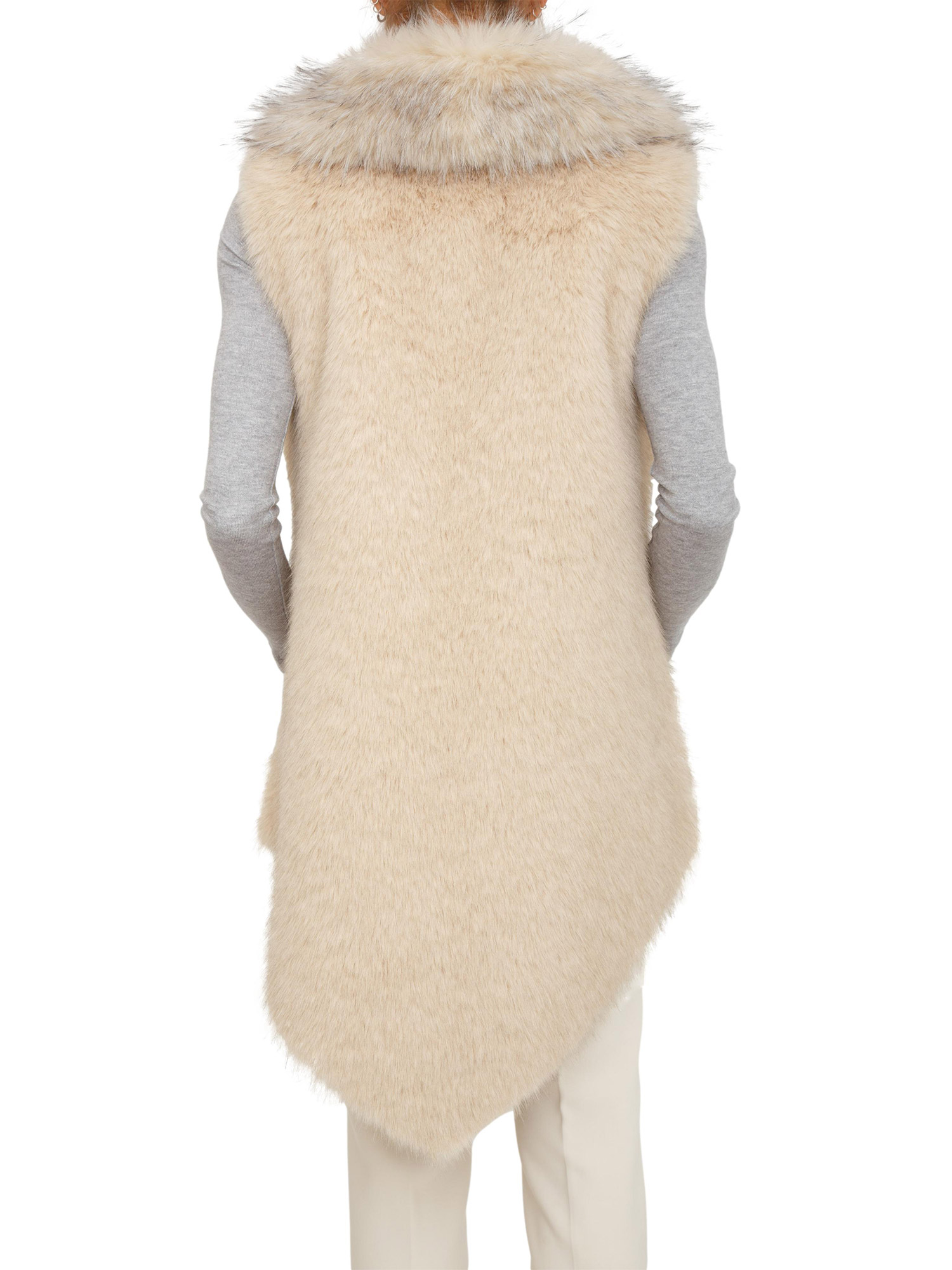 Brand: NENETTEGilet lungo Nenette in ecovolpe con collo in murmasky, perfetto per aggiungere un tocco di eleganza ai look casual-chic. Morbido e avvolgente, valorizza ogni outfit con stile contemporaneo. Ideale da indossare su maglie o abiti per un risultato sofisticato e di carattere. La modella è alta 1.72 e indossa la taglia 40.