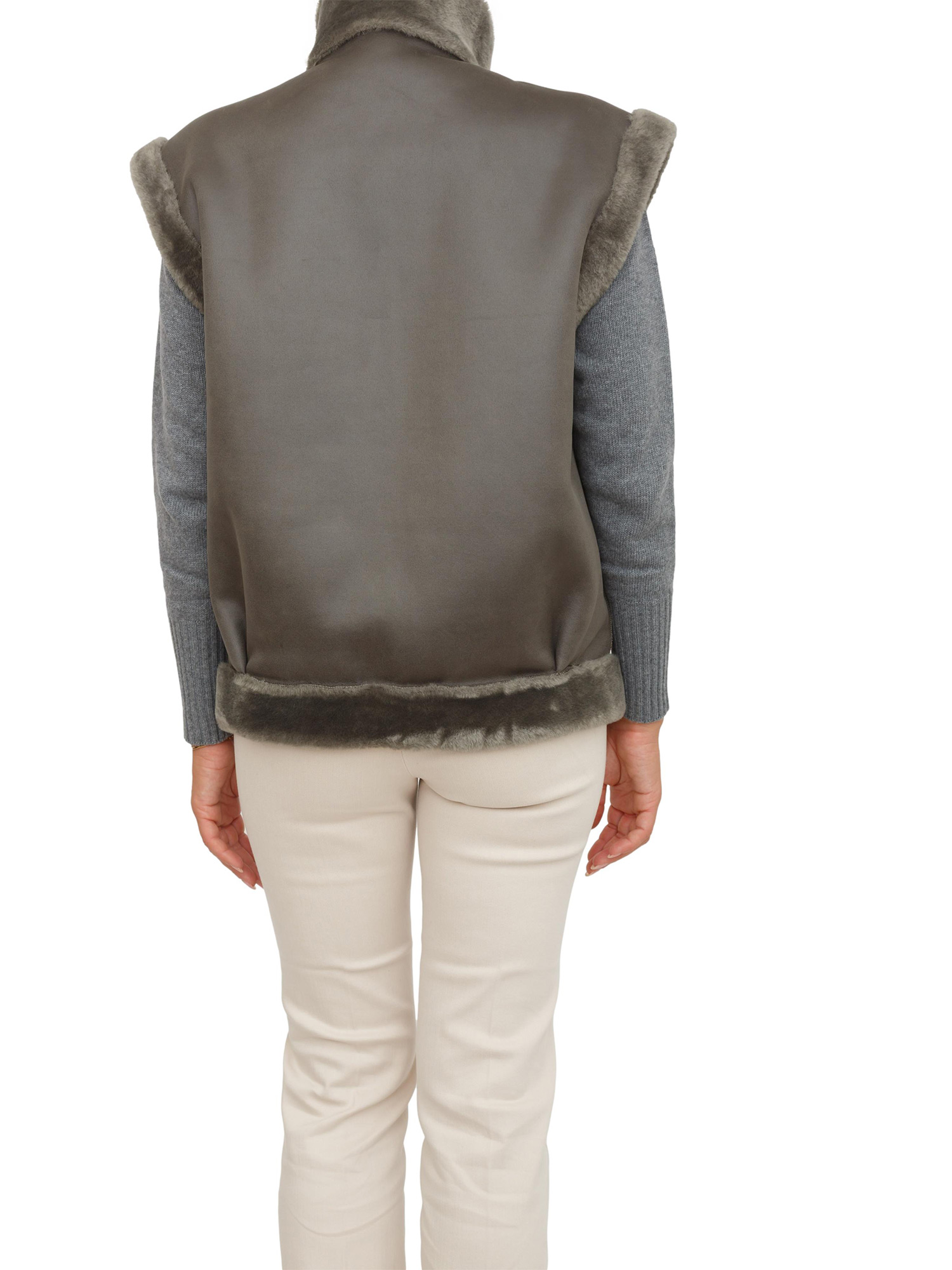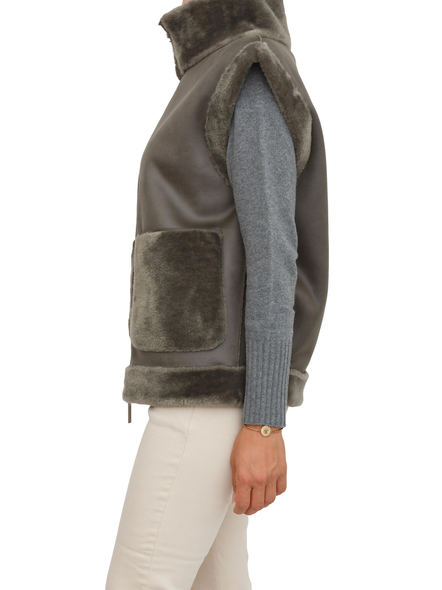 Gilet reversibile Marella in tessuto furry e vellutato verde oliva