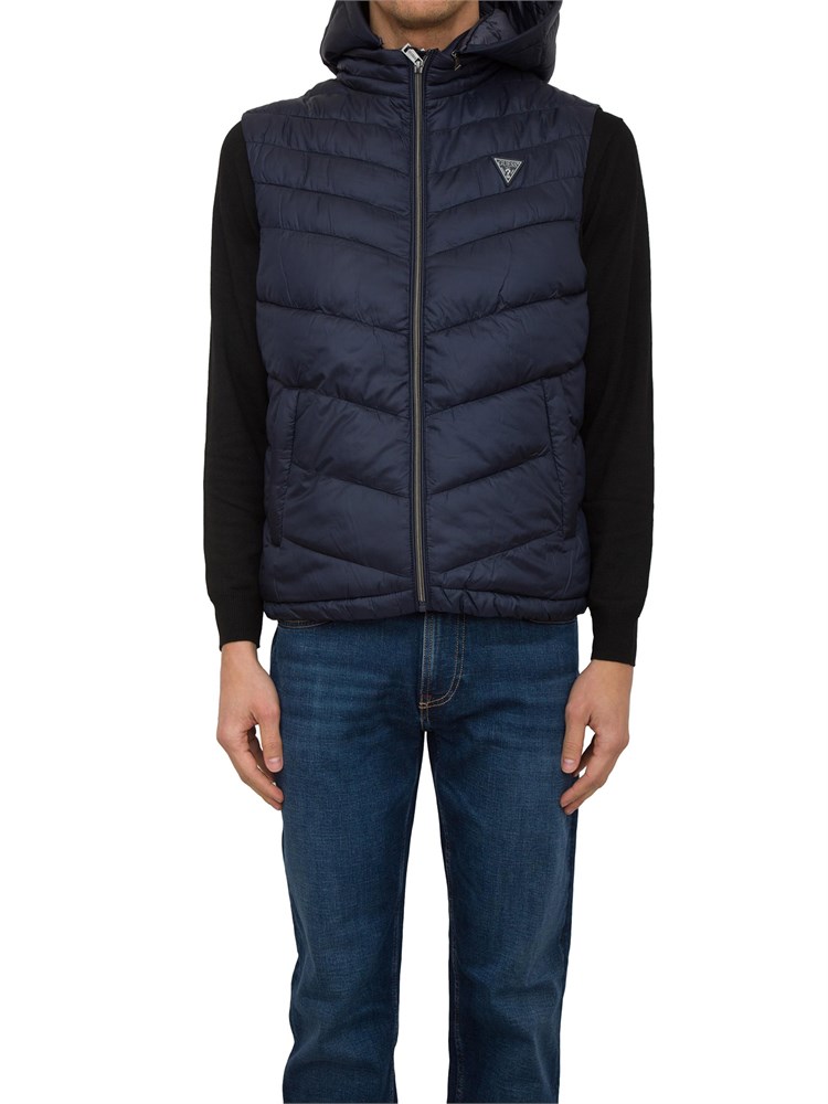 Brand: GUESS JEANSGilet Guess realizzato in materiale resistente a tinta unita, leggermente isolato. Impermeabile e antivento con chiusura a zip, cappuccio rimovibile e taglio dritto. Perfetto per un look pratico e moderno in ogni situazione.