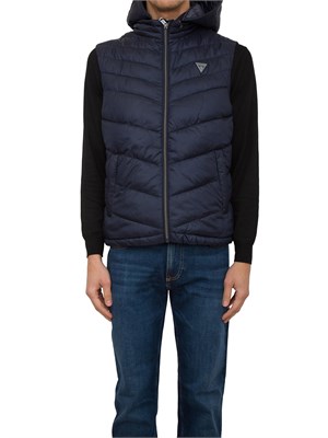 Brand: GUESS JEANSGilet Guess realizzato in materiale resistente a tinta unita, leggermente isolato. Impermeabile e antivento con chiusura a zip, cappuccio rimovibile e taglio dritto. Perfetto per un look pratico e moderno in ogni situazione.