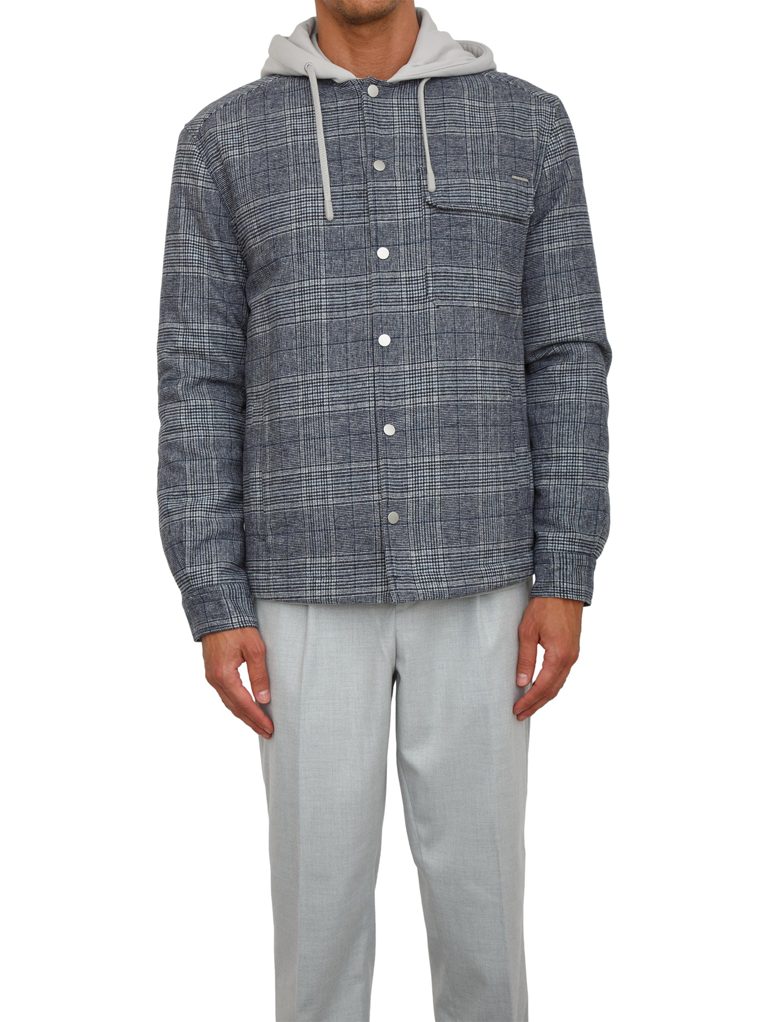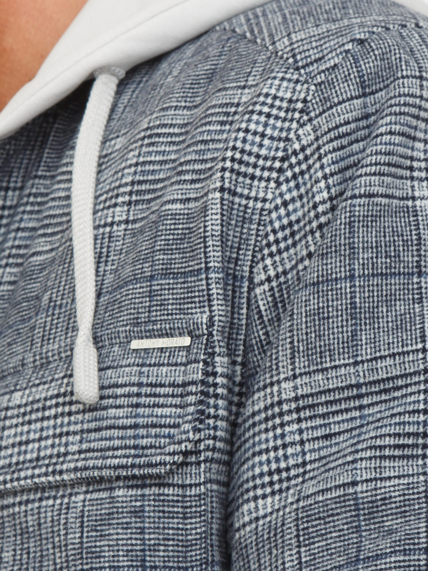 Giubbino Antony Morato in misto lana motivo principe di Galles e cappuccio in cotone grigio