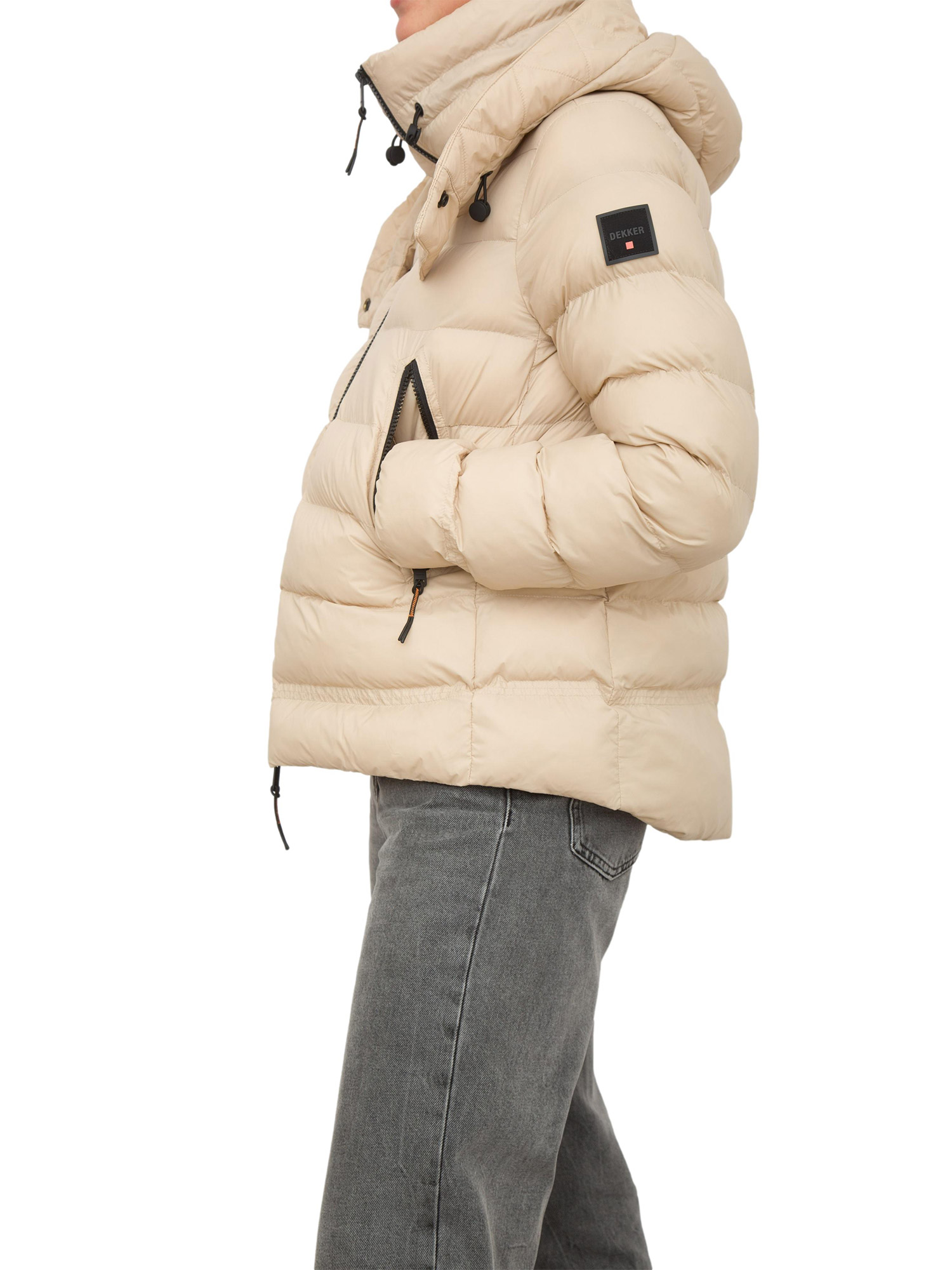 Brand: DEKKERPiumino corto dalla linea leggermente svasata e semi opaco realizzato in nylon semi-opaco superleggero 20 denari, dal peso di soli 40 grammi. Ampio collo in piedi, cappuccio staccabile. La zip centrale e quelle presenti sulle tasche laterali sono nere e conferiscono al modello un gusto grintoso e attuale. Tessuto water repellent e down proof, adatto alle attività quotidiane.