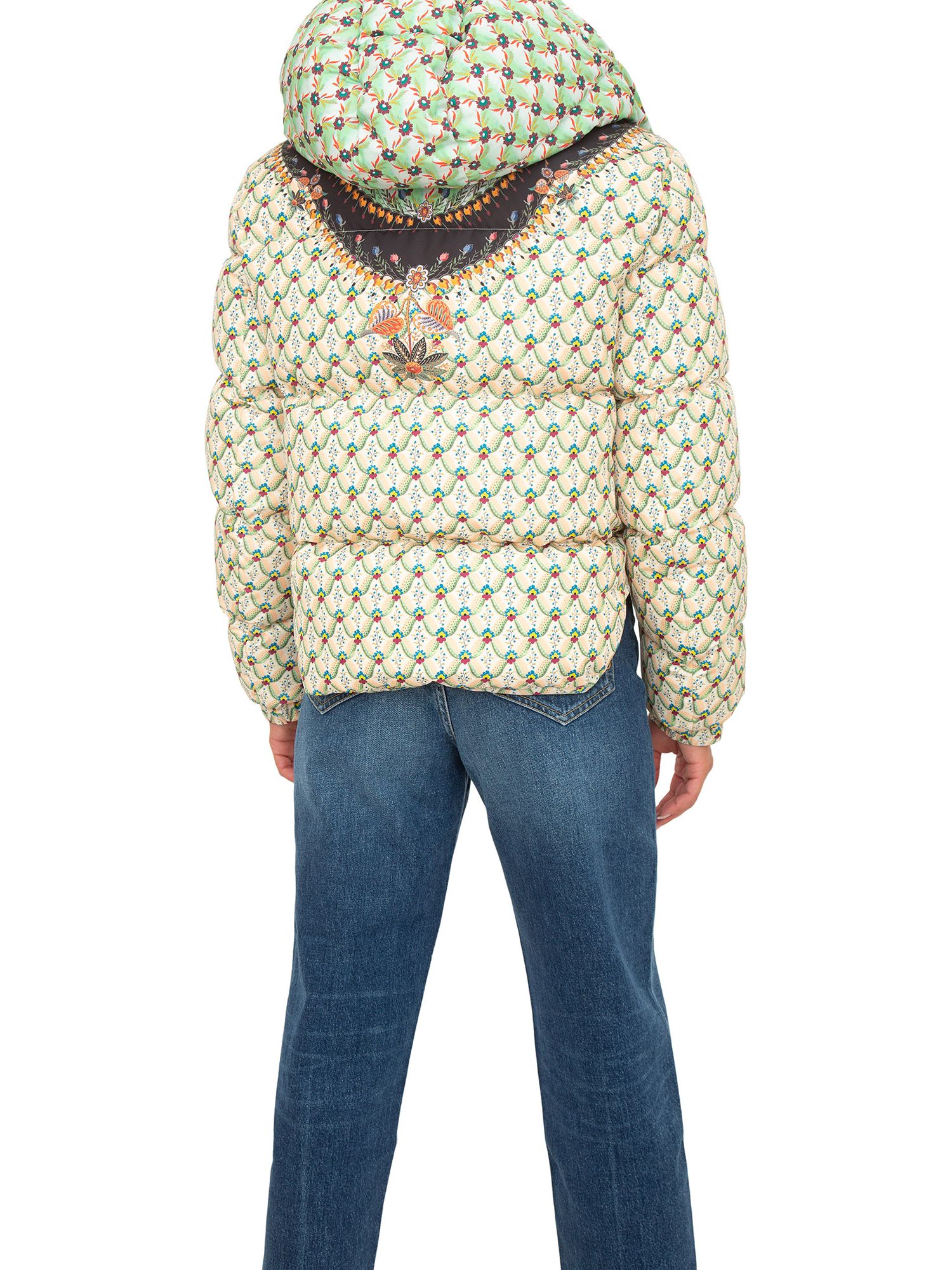 Brand: ETROPiumino corto con cappuccio realizzato in nylon tecnico, decorato da una stampa Floralia e bordatura piazzata ornamentale.