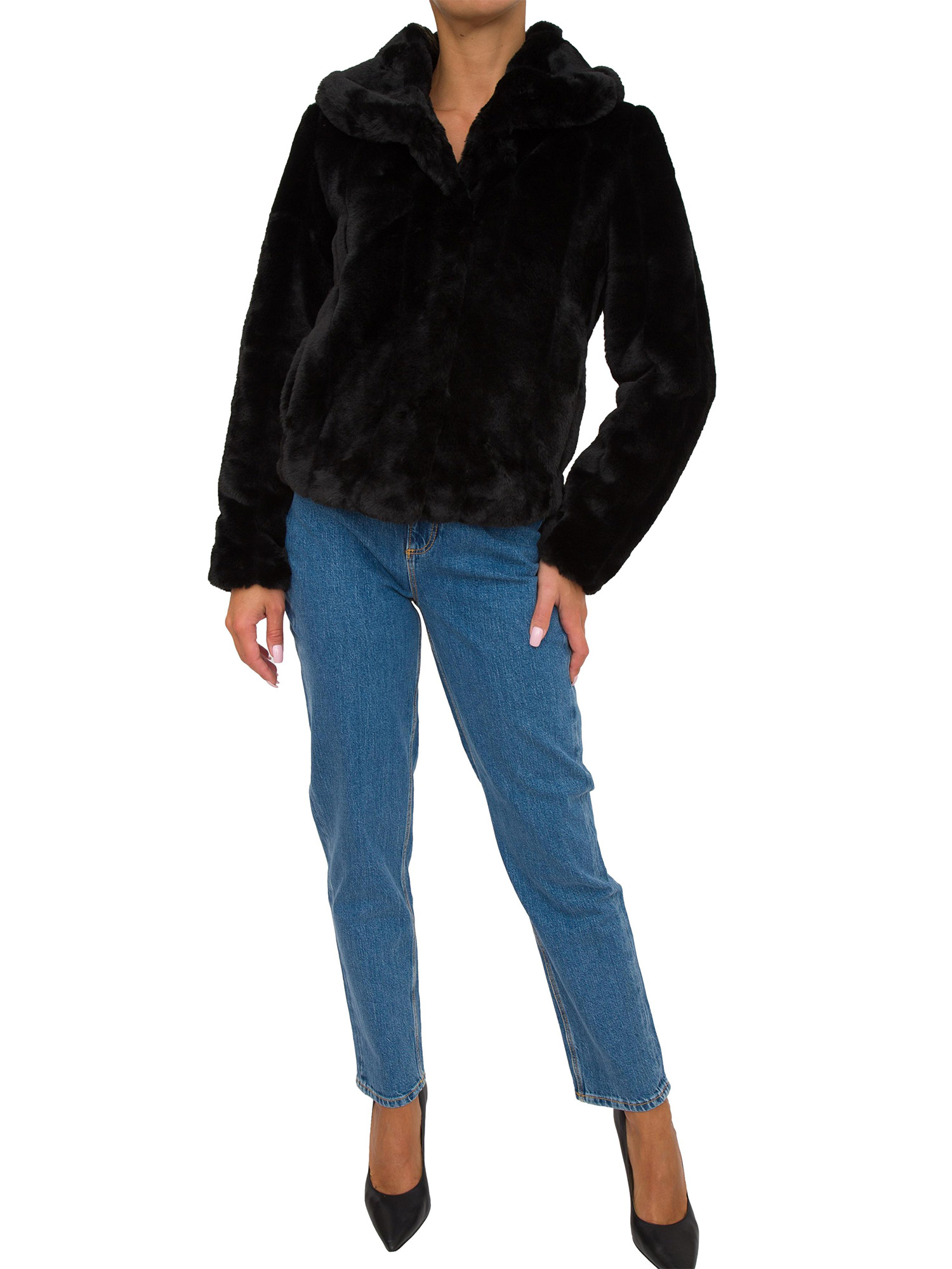 Brand: GUESS JEANSGiubbino da donna Guess Jeans realizzata in pelliccia sintetica a strisce, collo a scialle, manica lunga, chiusura aggangiata frontale e vestibilità regular.La modella indossa la taglia XS.