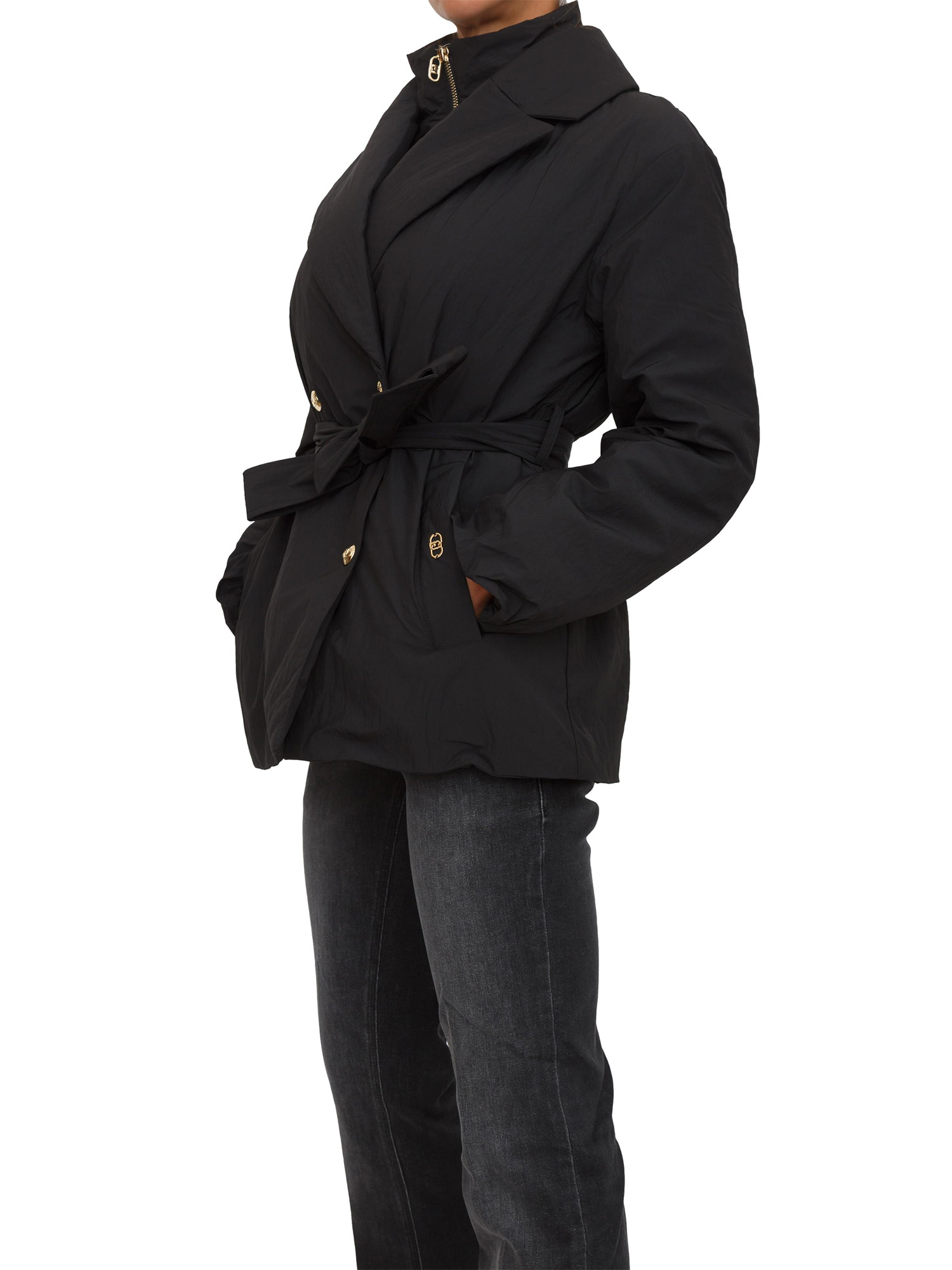 Brand: LIU JOGiubbino corto Liu Jo donna realizzato in nylon con calda imbottitura in ovatta e cintura in abbinamento. Modello dotato di comode tasche e chiusura interna con zip ed esterna con doppiopetto. La modella è alta 1.72 e indossa la taglia XXS.