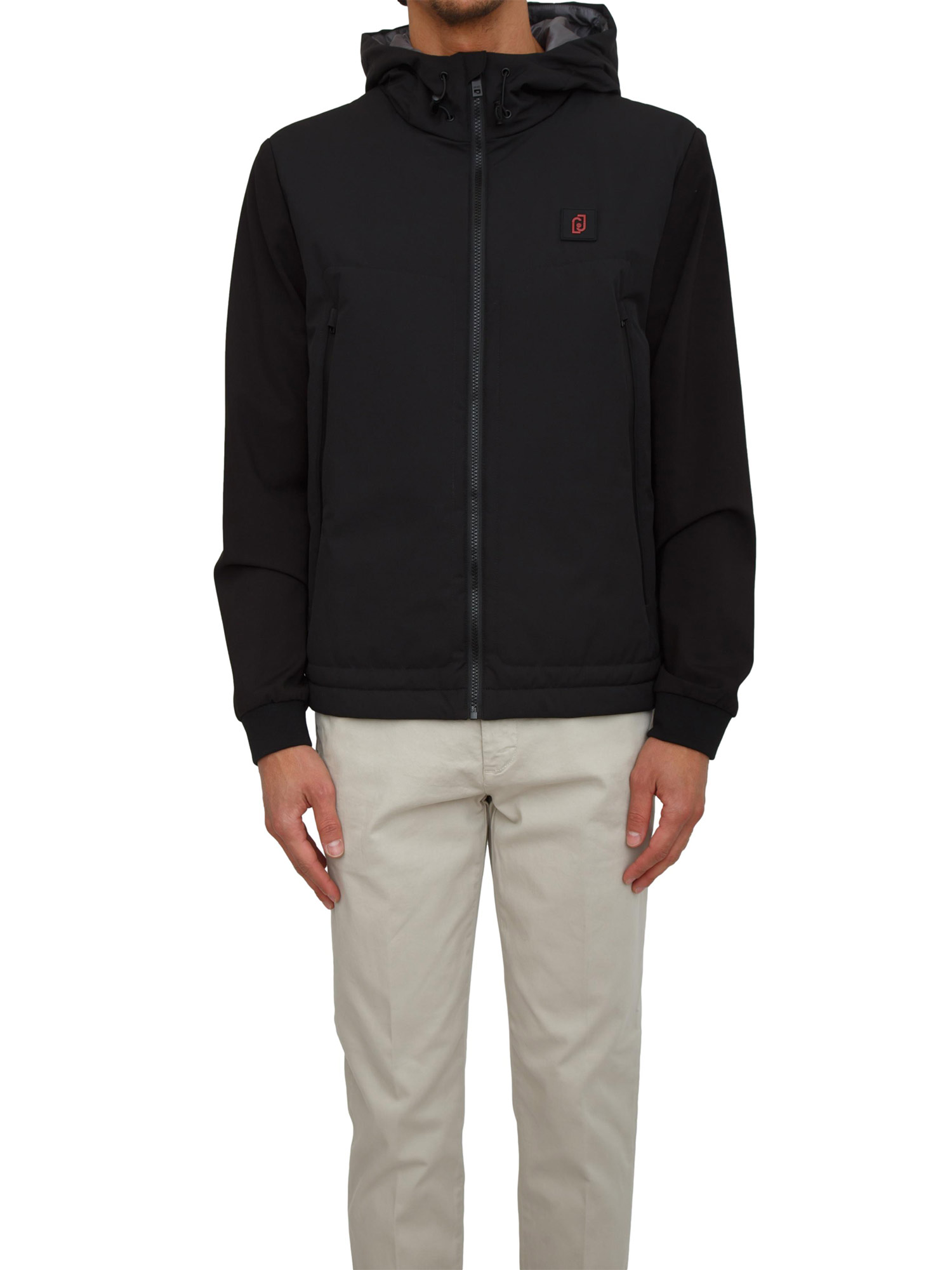 Brand: LIU JOGiubbino Liu Jo uomo realizzato in nylon con cappuccio con coulisse e vestibilità dritta. Polsi con elastico, comode tasche laterali e patch logo a contrasto sul petto. Il modello è alto 1.90m e indossa la taglia L.