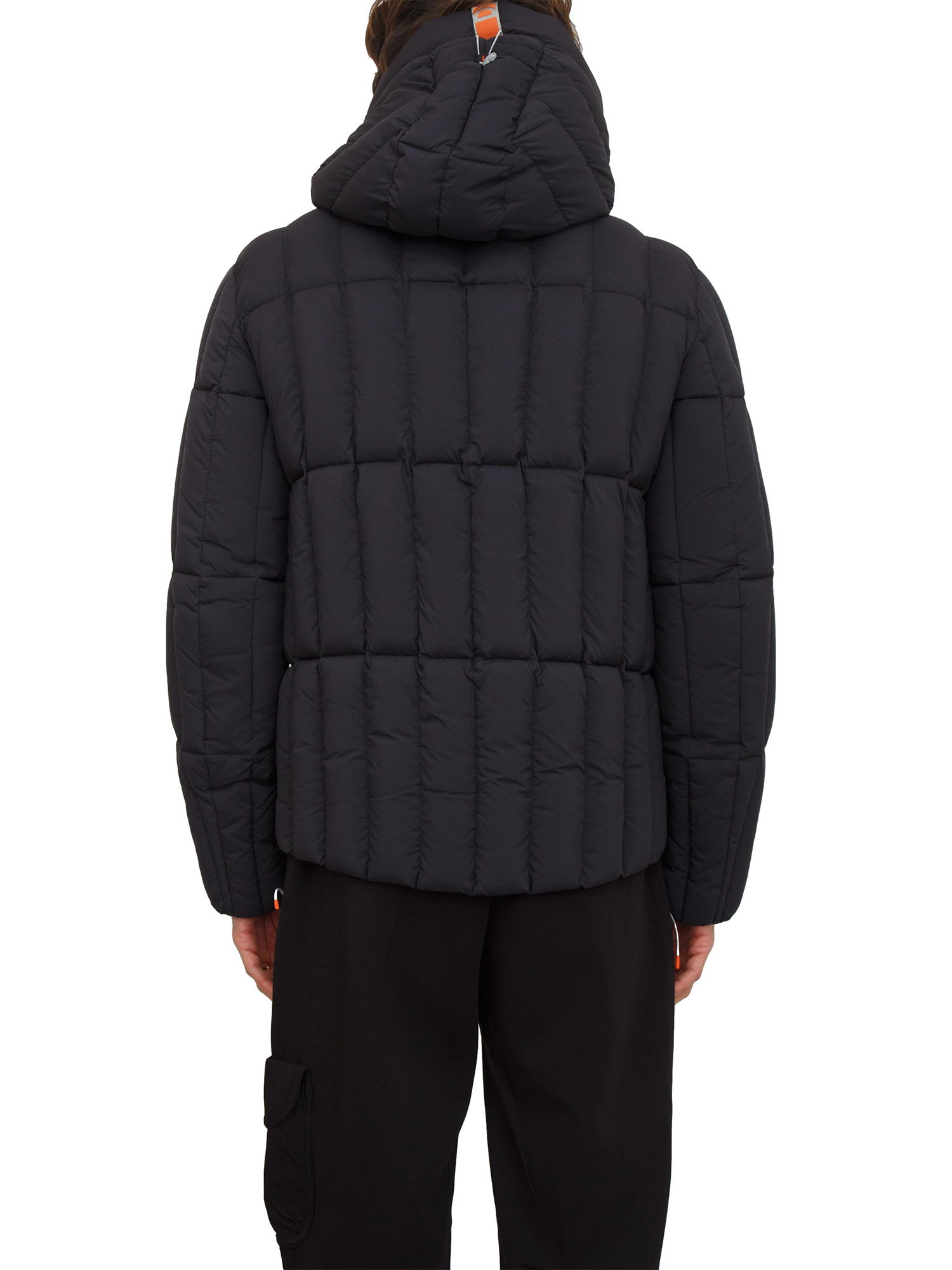 Giubbino uomo Dekker in nylon superleggero 20 denari dal finish semi-opaco con trapuntatura a piccoli lingotti e design essenziale. Trattamento water repellent, il collo a cratere e l'imbottitura in Sorona assicurano protezione e comfort. Il modello è alto 1.90m e indossa la taglia M.