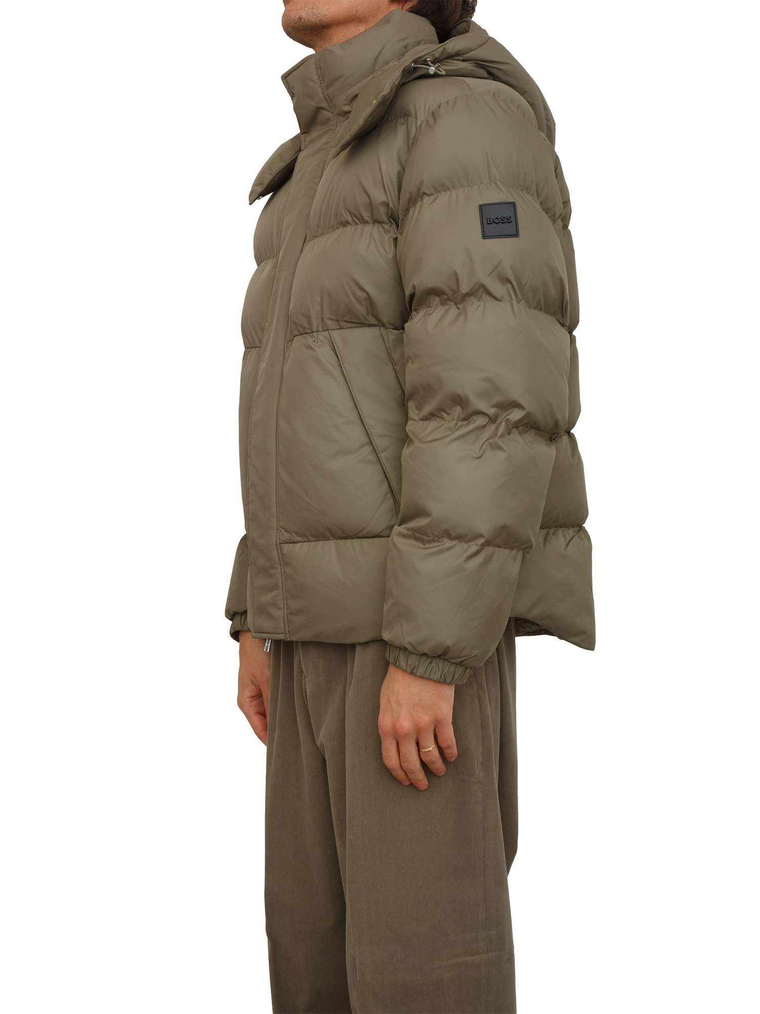 Brand: BOSSResta al caldo e all'asciutto nella mezza stagione con questo giubbotto imbottito BOSS Uomo con rivestimento idrorepellente. Dotato di cappuccio staccabile, chiusura zip e bottoni e targhetta con logo sulla manica sinistra. Il modello è alto 1.90m e indossa la taglia 50.