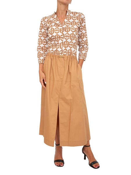 Brand: IBLUESGonna lunga iBlues realizzata in mussola misto cotone e seta con linea svasata e arricciatura in vita. Leggera e iper femminile: completa l'outfit con una cintura per sottolineare il punto vita. La modella è alta 1.72 e indossa la taglia 40.