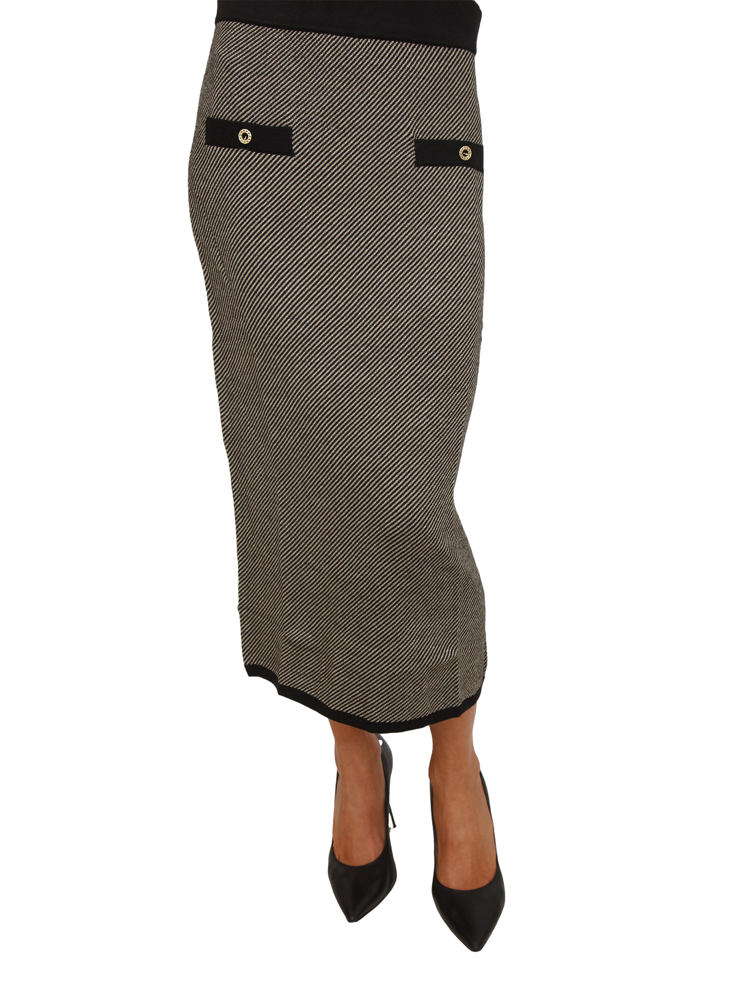 Gonna Erada Kocca in maglia lurex a righe nera e tortora