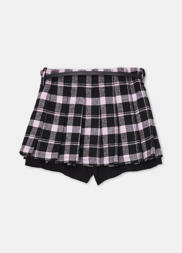 Gonna plissé in misto cotone, motivo check all over, cintura sur ton in abbinamento e chiusura con zip invisibile sul fianco.
