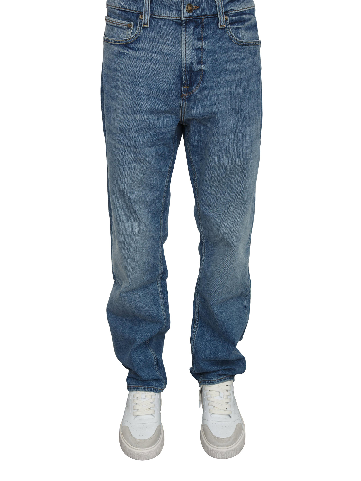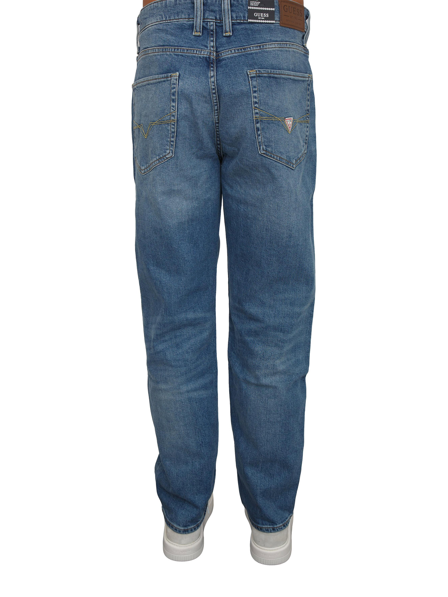 Brand: GUESS JEANSJeans 5 tasche Guess Jeans uomo realizzato in misto lyocell stretch con vestibilità regular. Classica vita media, gamba dritta e lavaggio leggermente scolorito. Il modello è alto 1.90m e indossa la taglia 33.