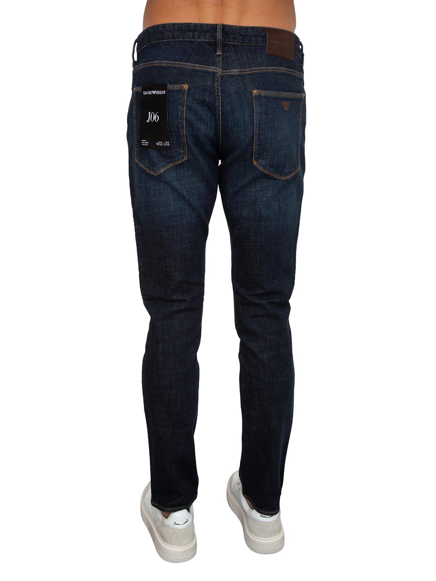 Brand: EMPORIO ARMANIJeans uomo Emporio Armani realizzato in cotone elasticizzato blu scuro con effetto sabbiaturak e delavé. Design slim fit a via bassa con cuciture a contrasto e logo dietro. Comodi e fashion da indossare sotto ogni outfit. Il modello è alto 1.90m e indossa la taglia 32.