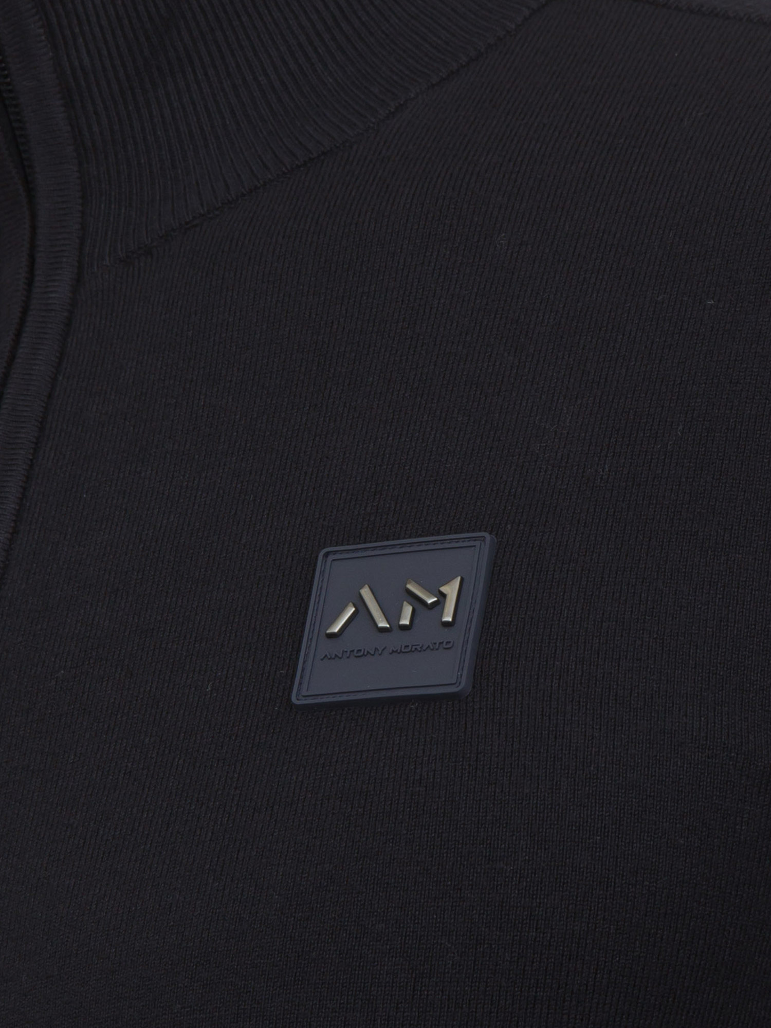 Maglia Antony Morato slim fit in misto viscosa blu con patch logata e zip