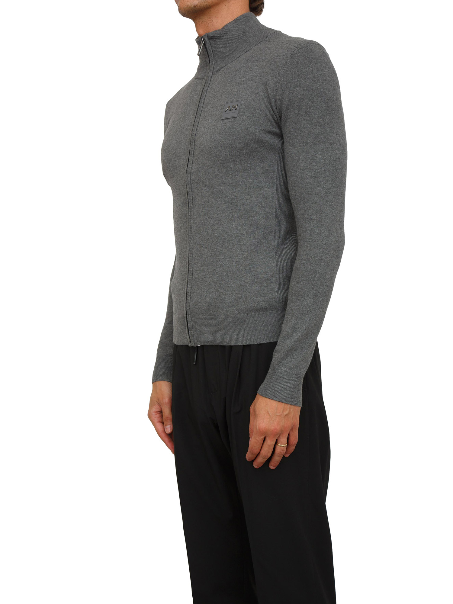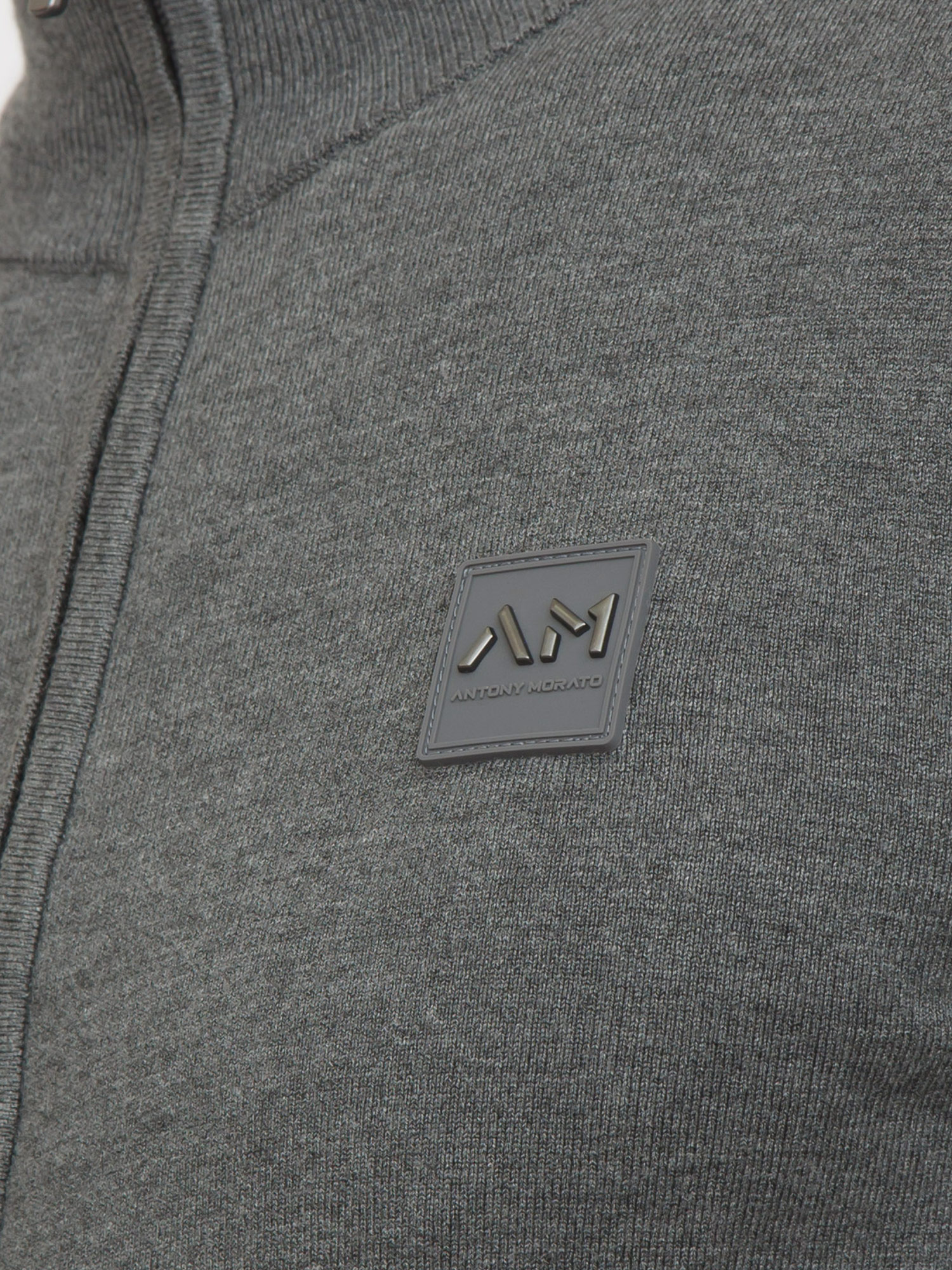Maglia Antony Morato slim fit in misto viscosa grigia con patch logata e zip