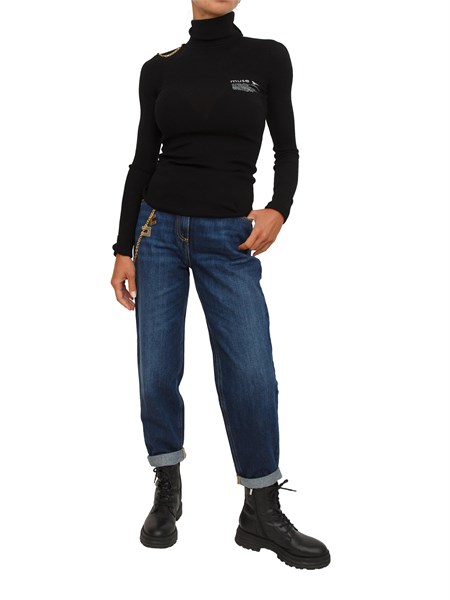 Brand: BLUGIRLMaglia Blugirl in lana e cachemire, dalla linea morbida con collo tondo, maniche lunghe e spalle scese. Profili rifiniti a costine e logo lettering con cristalli termoadesivi. Easy knitwear da interpretare come vuoi. La modella è alta 1.72 e indossa la taglia S.