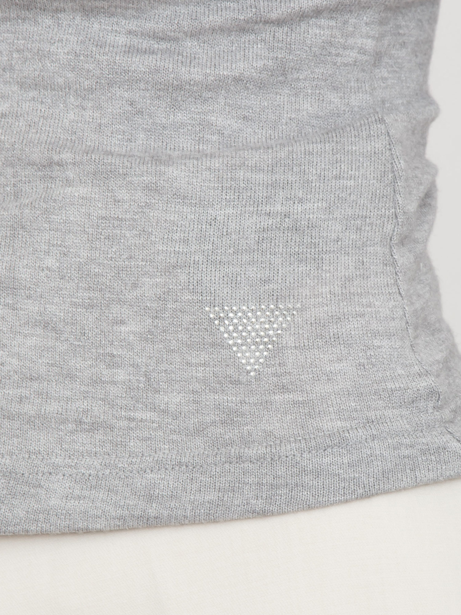 Brand: GUESS JEANSMaglia lupetto Guess Jeans donna realizzata in jersey di misto viscosa con vestibilità aderente e logo tiangolo con strass. La modella è alta 1.72 e indossa la taglia XS.