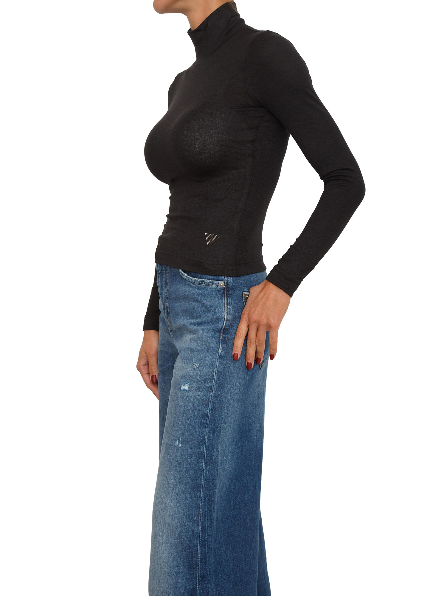 Maglia collo alto Guess Jeans donna in viscosa nera