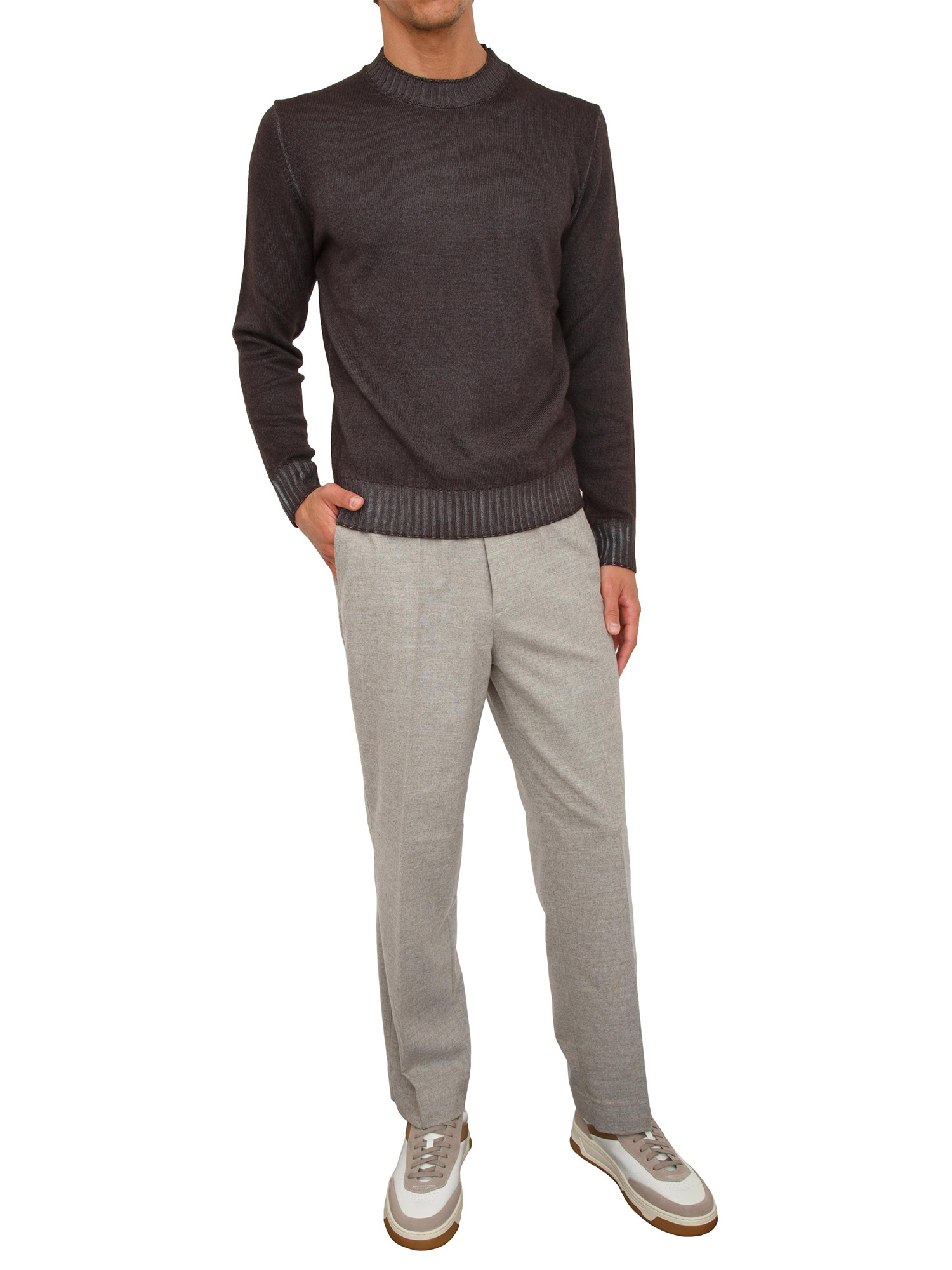 Maglia girocollo Aiace Galassi in pura lana grigio antracite con fondi a costine delavÉ