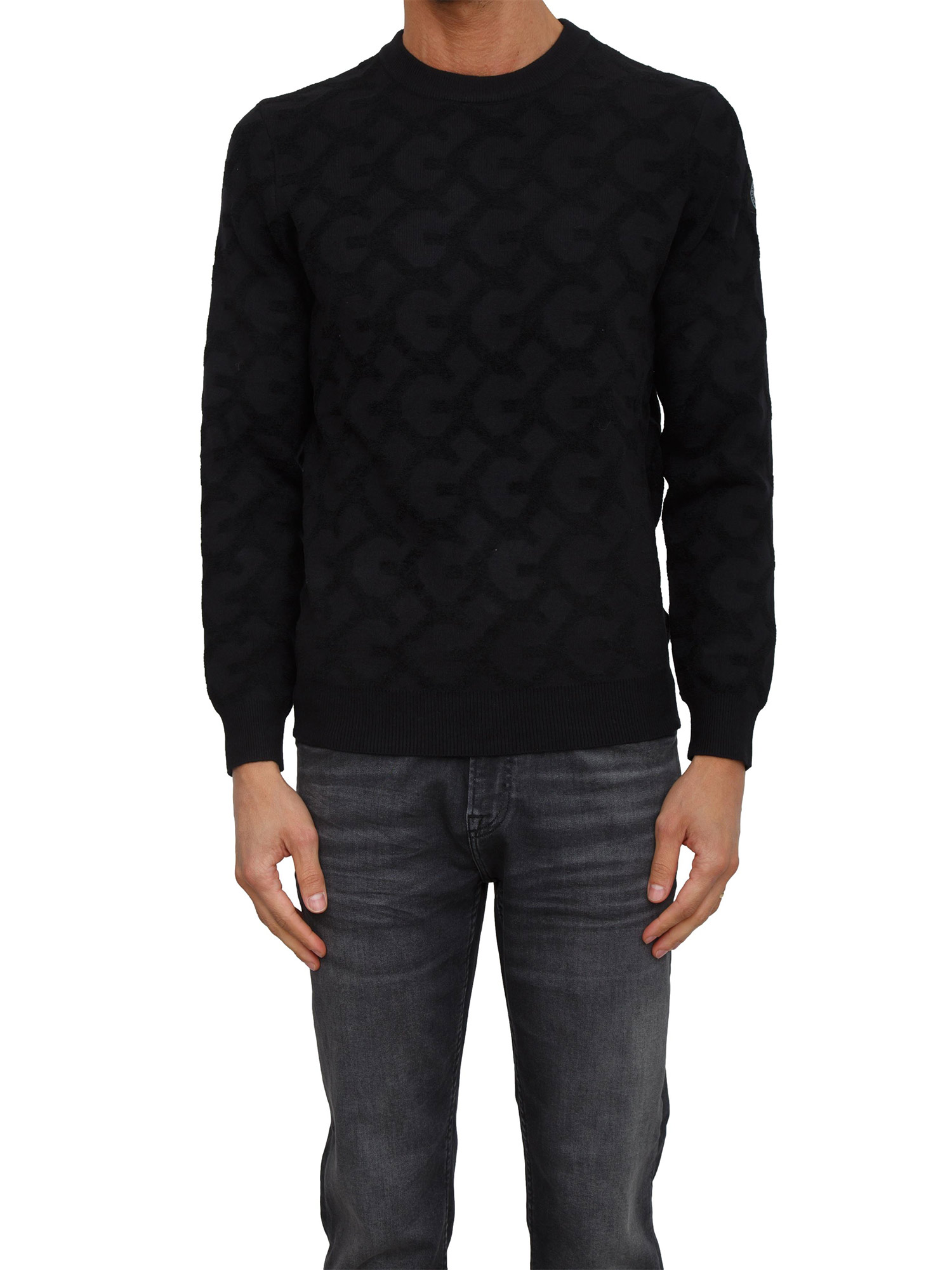 Brand: GUESS JEANSMaglia Guess Jeans uomo realizzata in maglia a lavorazione jacquard con comoda vestibilità regular. Girocollo, polsi e orlo in maglia a costine e patch logo su braccio. Il modello è alto 1.90m e indossa la taglia M.