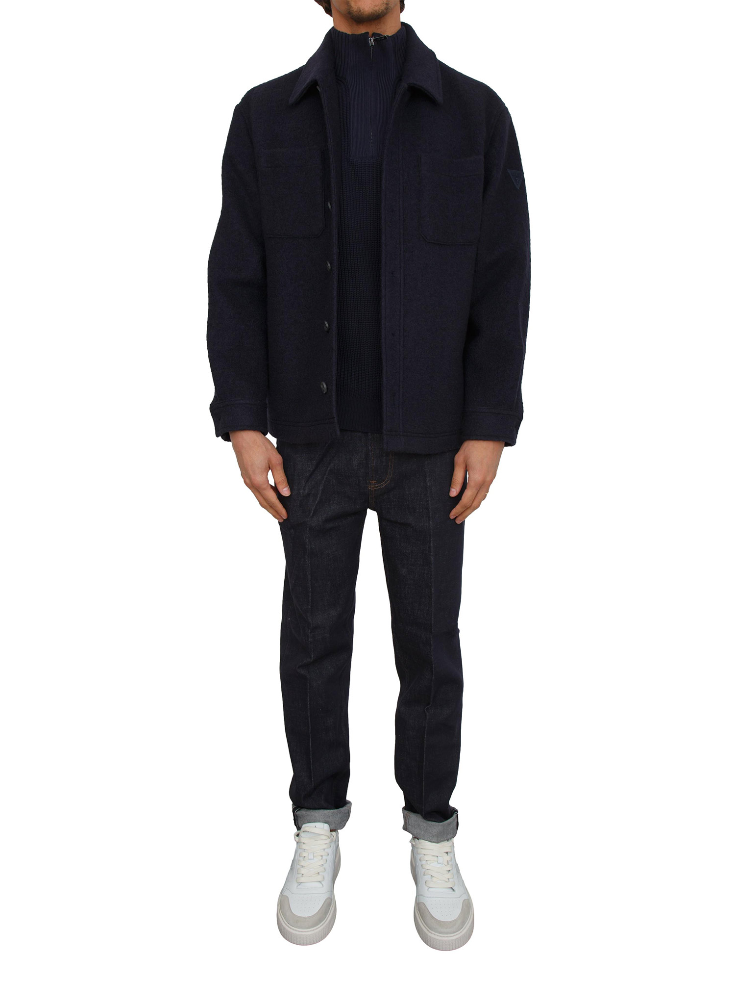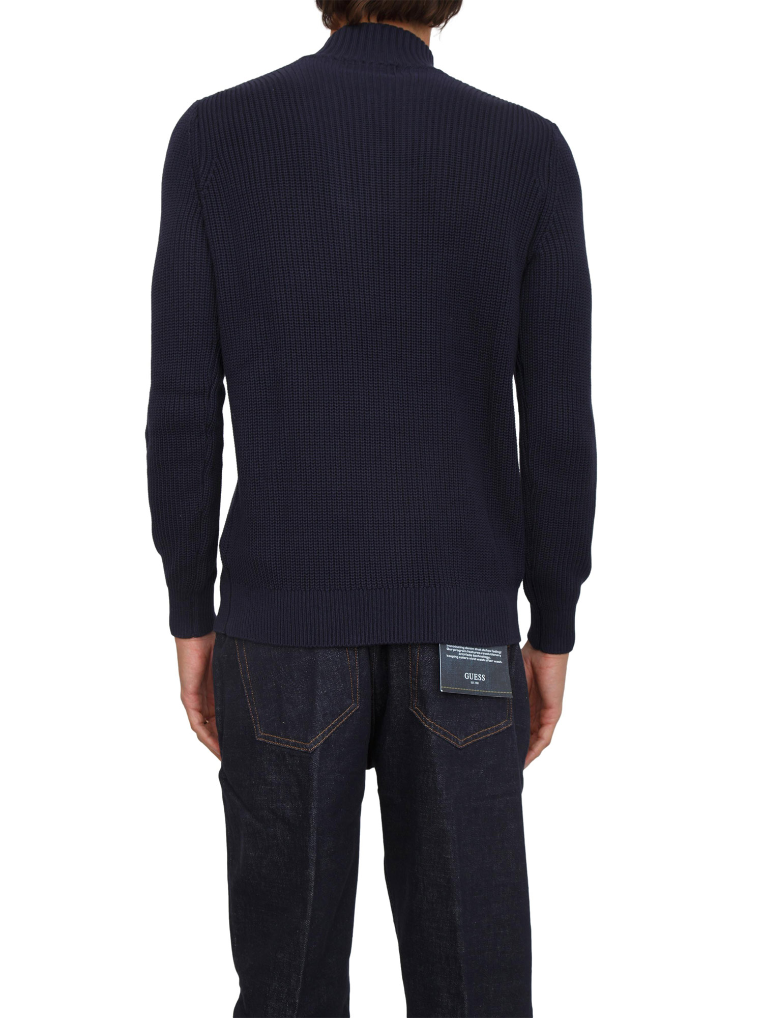 Maglia Guess Jeans uomo in viscosa blu a coste con mezza zip