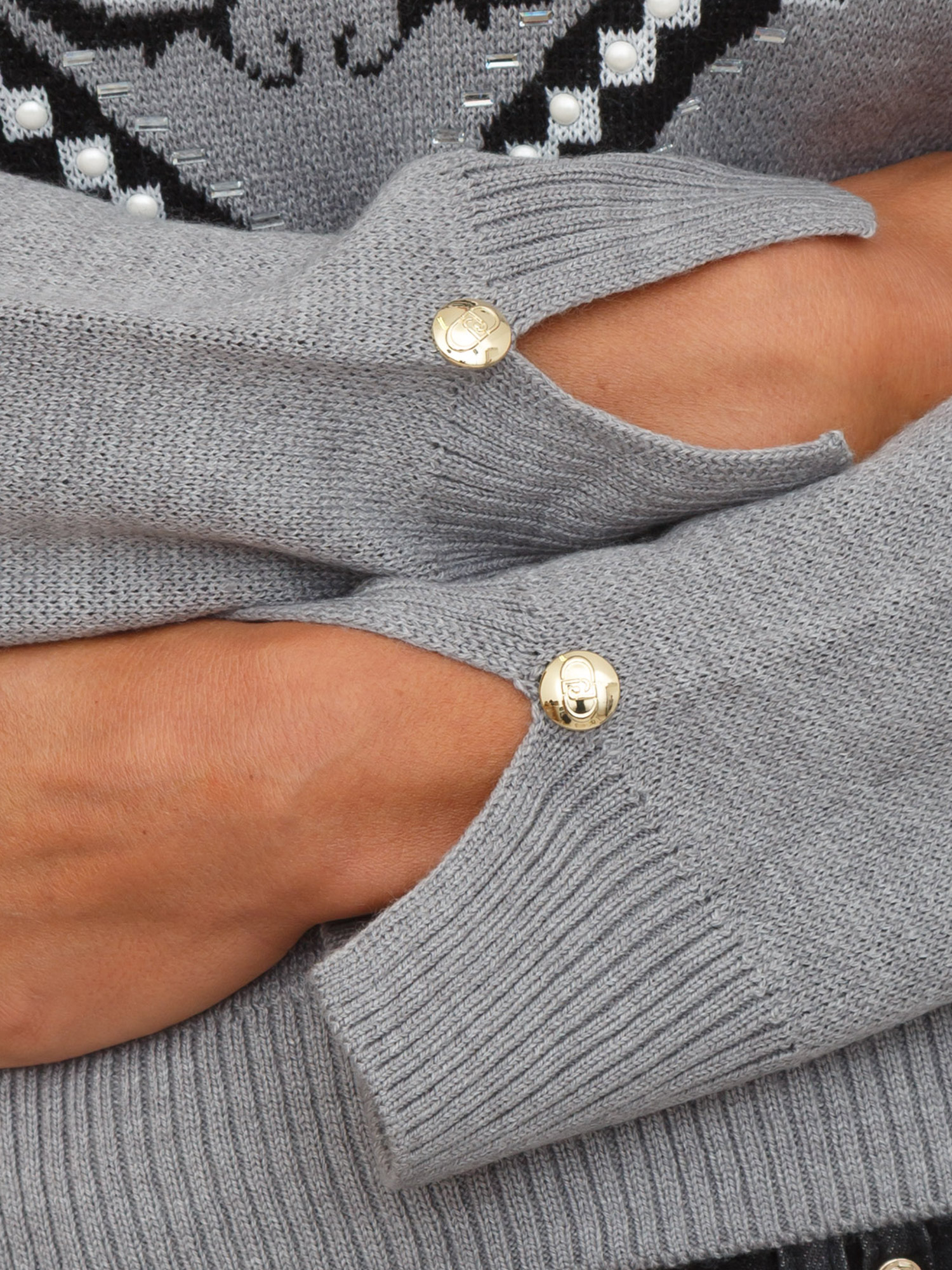 Maglia Liu Jo donna in lana grigia con logo jacquard strass e borchie