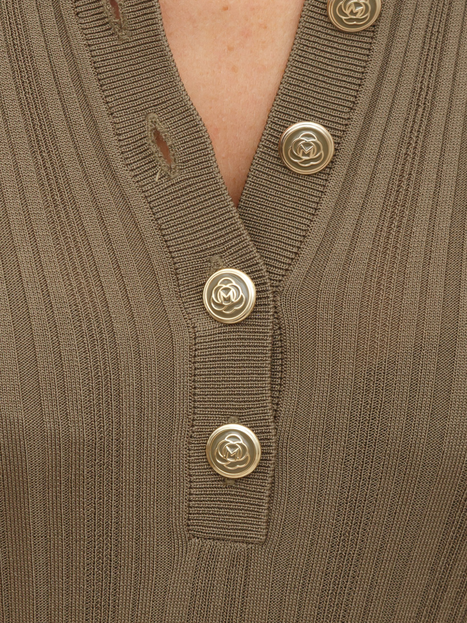 Maglia Marella scollo V con bottoni logo in misto di viscosa verde a costine irregolari