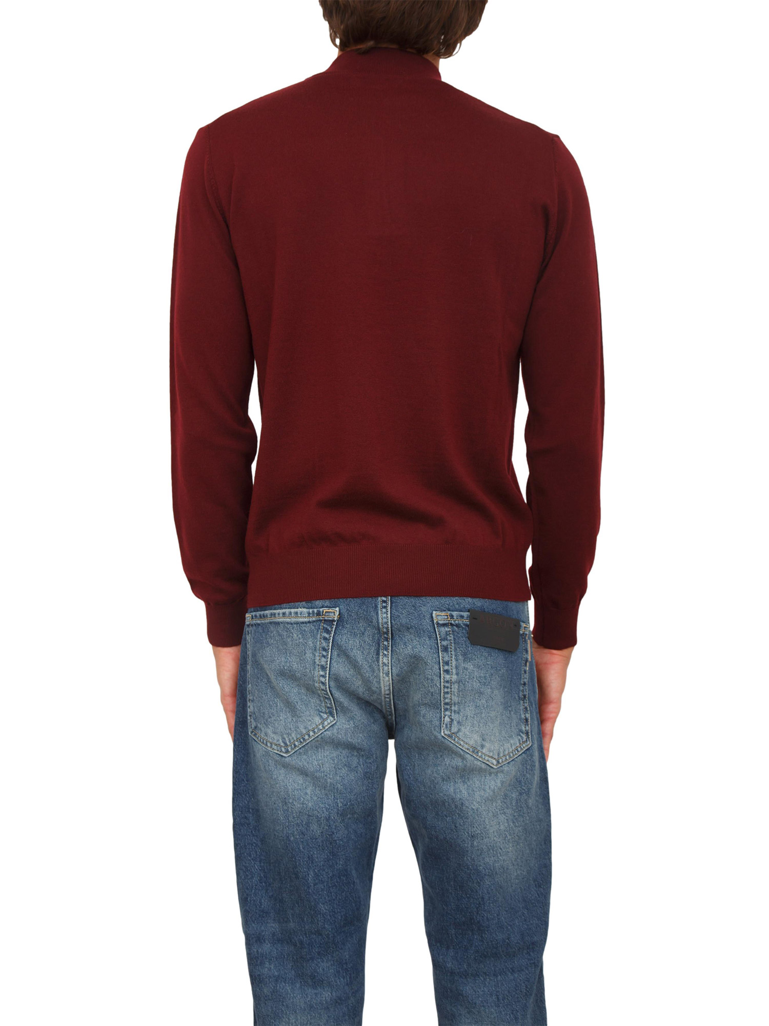 Maglia mezza zip manica lunga Aiace Galassi in pura lana bordeaux