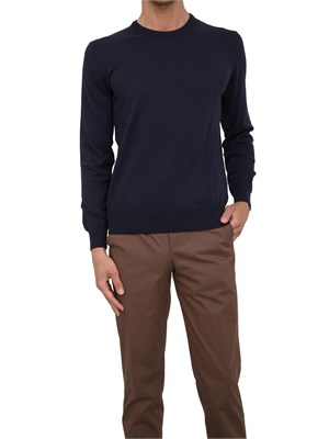 Maglia uomo Aiace Galassi con girocollo e manica lunga in jersey di cotone blu aperto