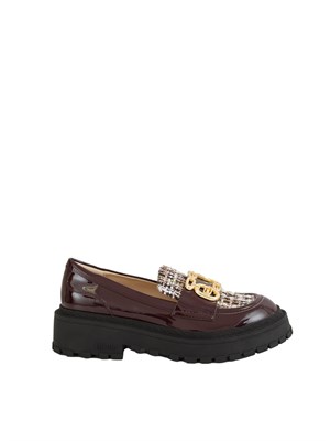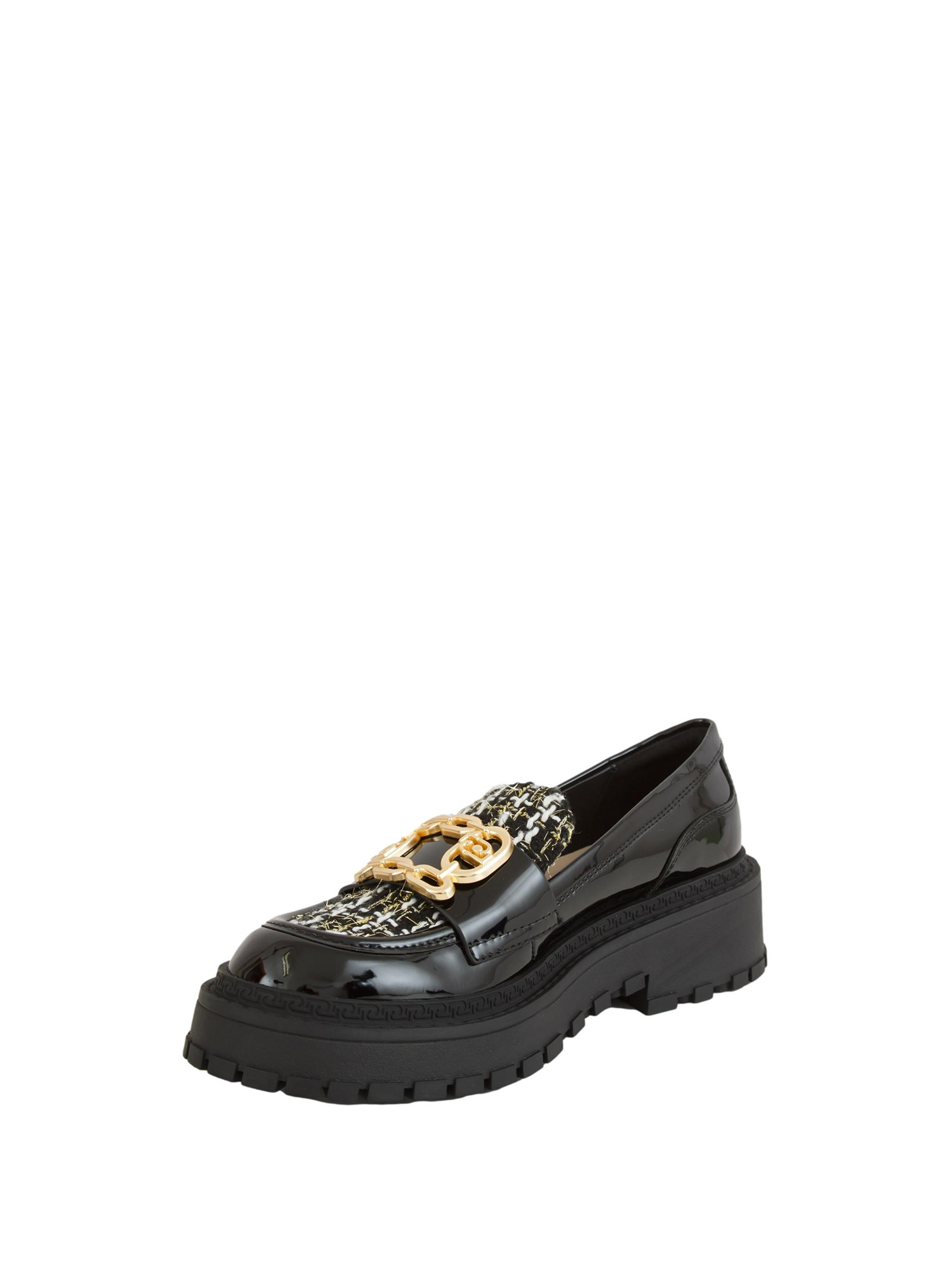 Brand: LIU JOMocassini Liu Jo donna Rumi 34 realizzati in vernice con inserto bouclé. Design con accessorio chain con logo, fondo con guardolo logato e battistrada dentellato. Altezza suola: 5 cm.