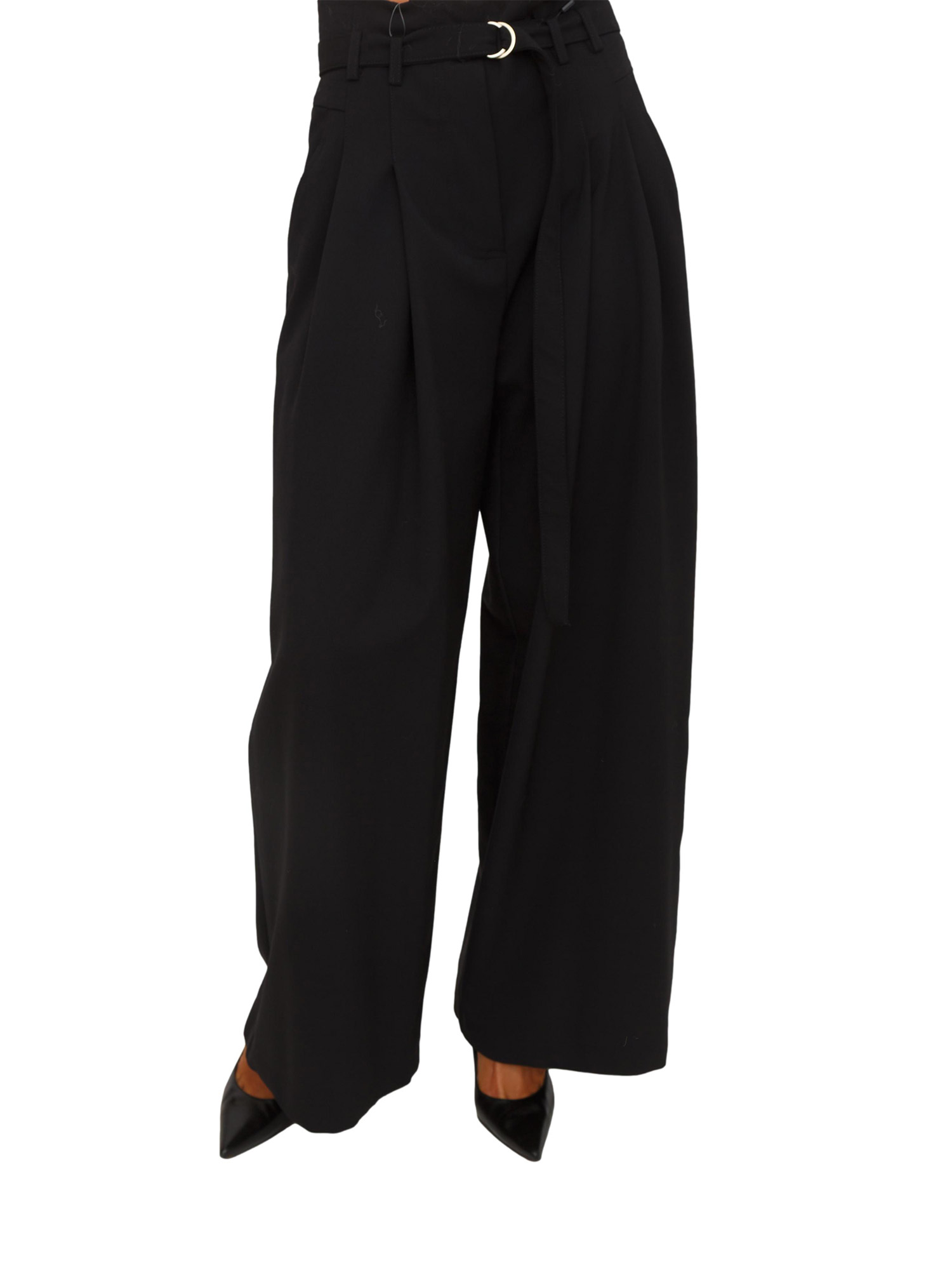 Brand: MARELLAEvoluzione cool del pantalone a vita alta Marella, in tessuto diagonale stretch e volume ampio sulla gamba per una silhouette slanciata. Il dettaglio della cintura in vita con fibbia metallica aggiunge quella giusta nota casual che definisce il look. La modella è alta 1.72 e indossa la taglia 38.