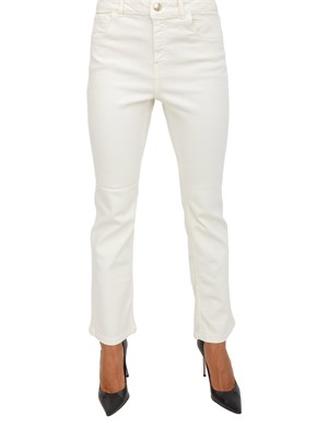 Brand: EMME MARELLAMorbidamente svasati al fondo, i jeans Emme Marella slanciano la figura e mantengono inalterato il fascino selvaggio del denim. Perfetti sugli stivali, si sposano con le bluse romantiche in georgette in un mix di city and west style. La modella è alta 1.72 e indossa la taglia 38.