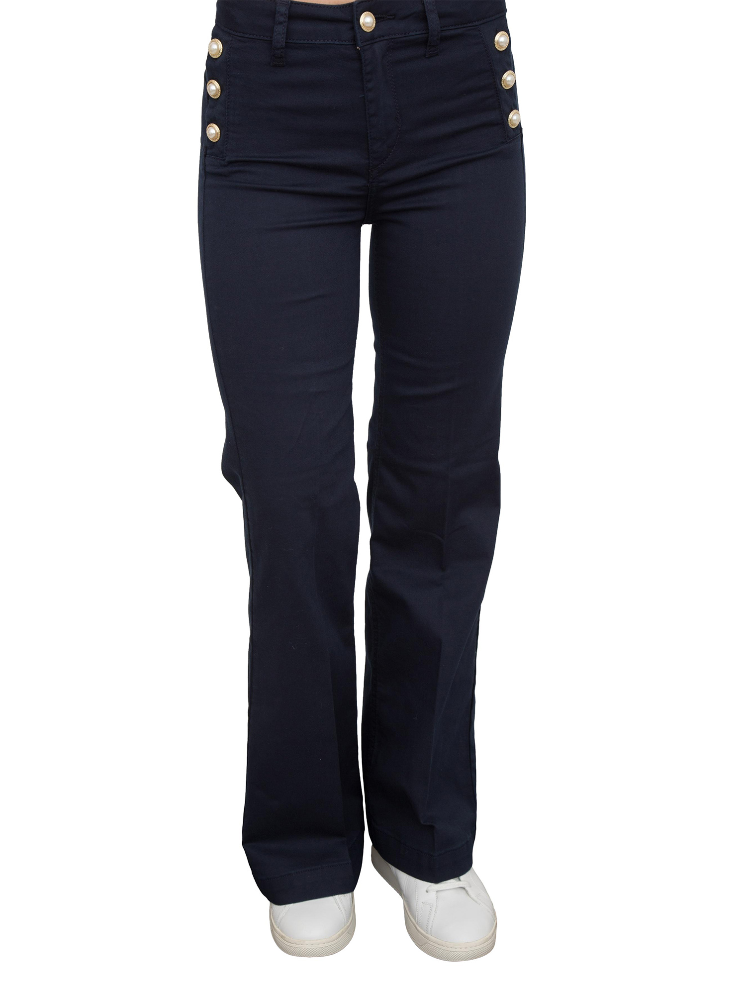 Pantaloni blu Liu Jo modello bottom up flare con bottoni gioiello