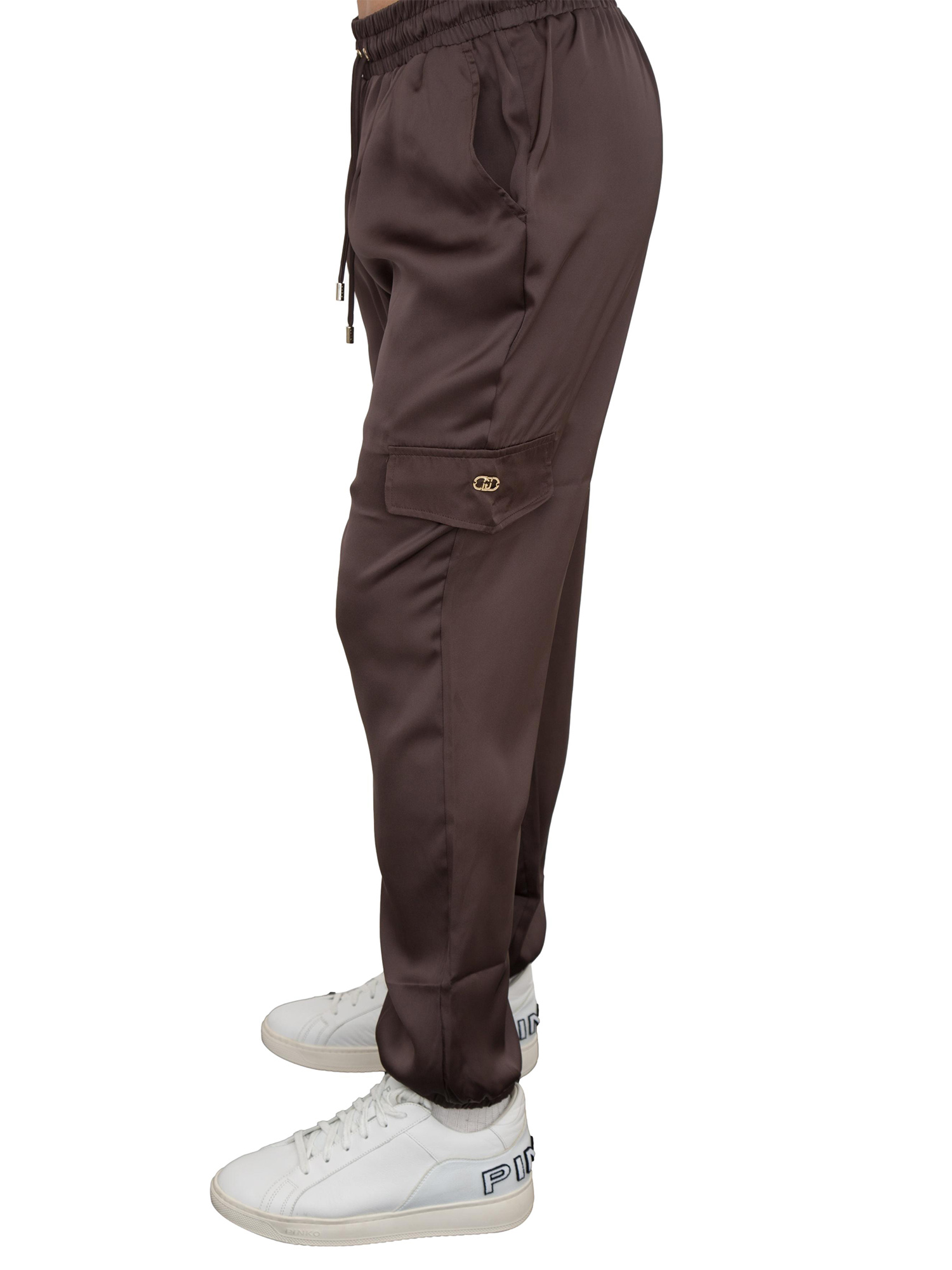 Pantaloni marroni in raso Liu Jo modello jogging cargo