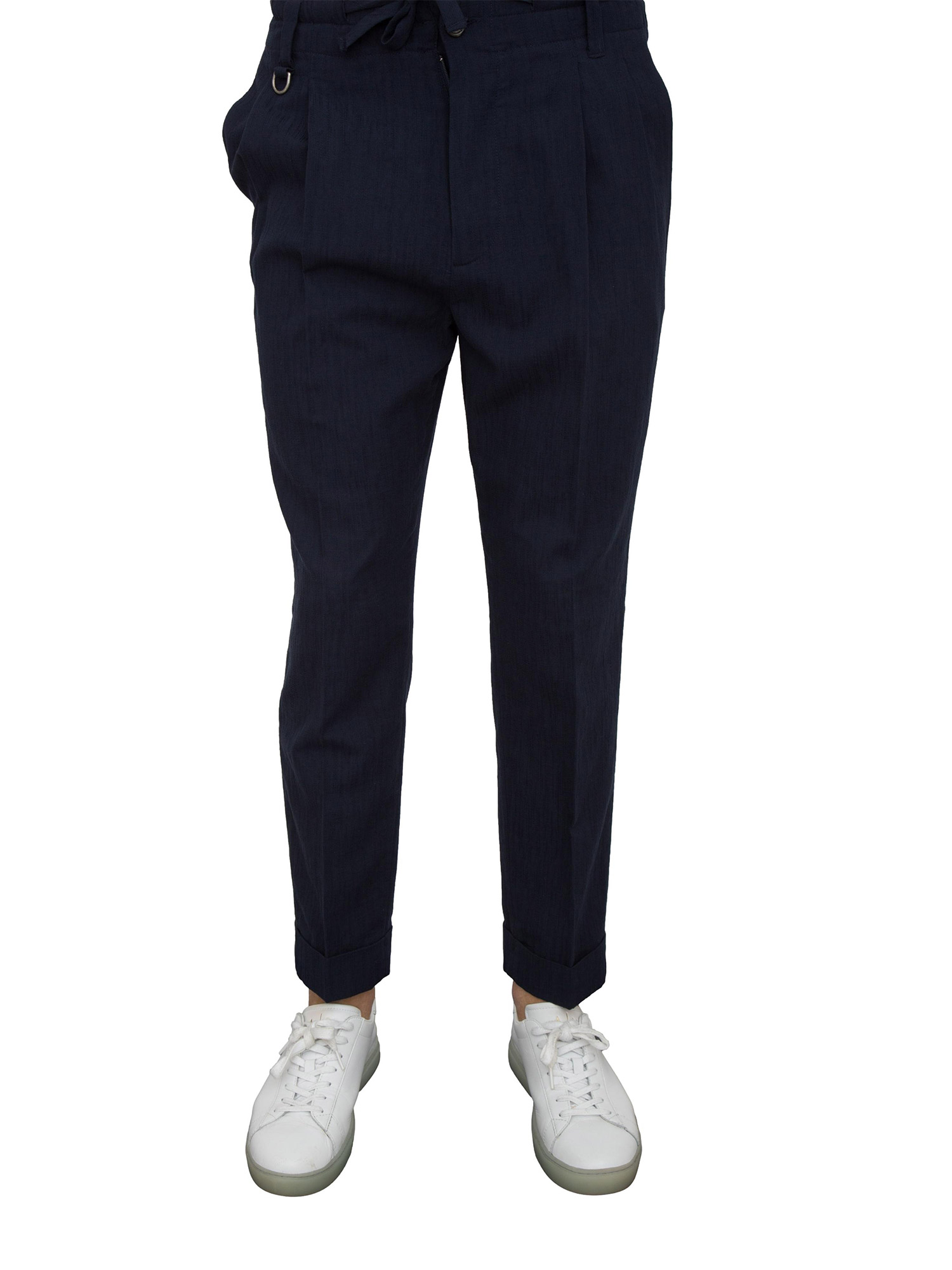 Pantalone chino blu Paolo Pecora con coulisse ed elastico in vita