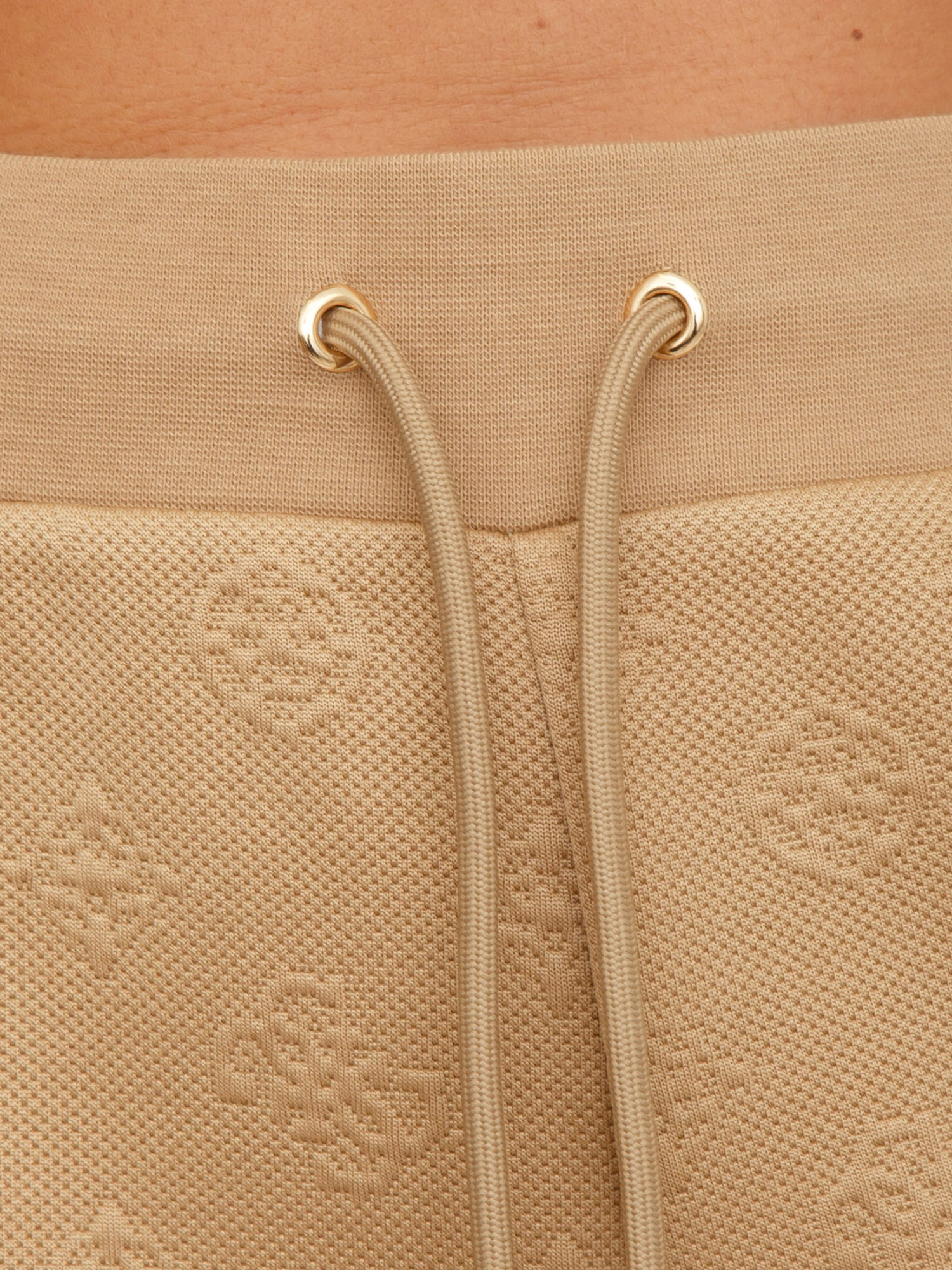 Pantalone jogging Guess Jeans donna in cotone beige logo jacquard