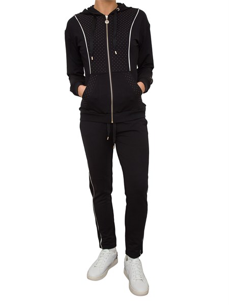 Pantalone tuta donna EA7 Emporio Armani in misto viscosa nero con trama canneté