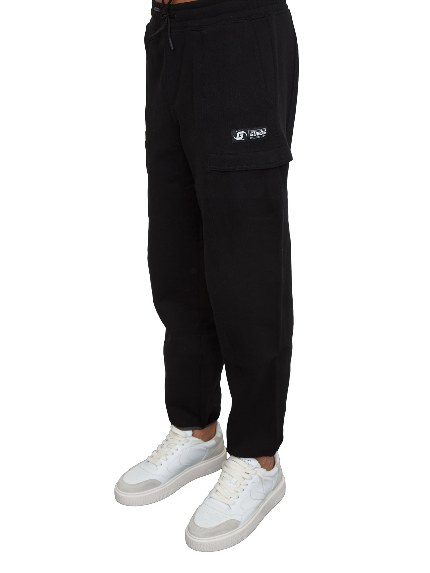 Pantalone tuta Guess Jeans uomo in cotone nero con bande logo