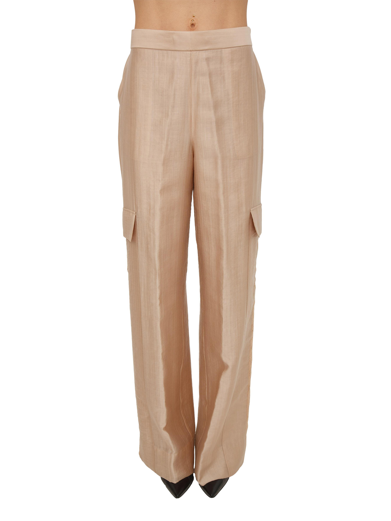 Brand: BLUGIRLLinea fluida e versatile per i pantaloni ampi Blugirl realizzati in lyocell con dettagli in pizzo nelle tasche ai fianchi. Elastico inserito in vita e tasche applicate con patta ai fianchi effetto cargo. Crea un completo dall'eleganza rilassata abbinandoli alla camicia over in coordinato. La modella è alta 1.72 e indossa la taglia 40.