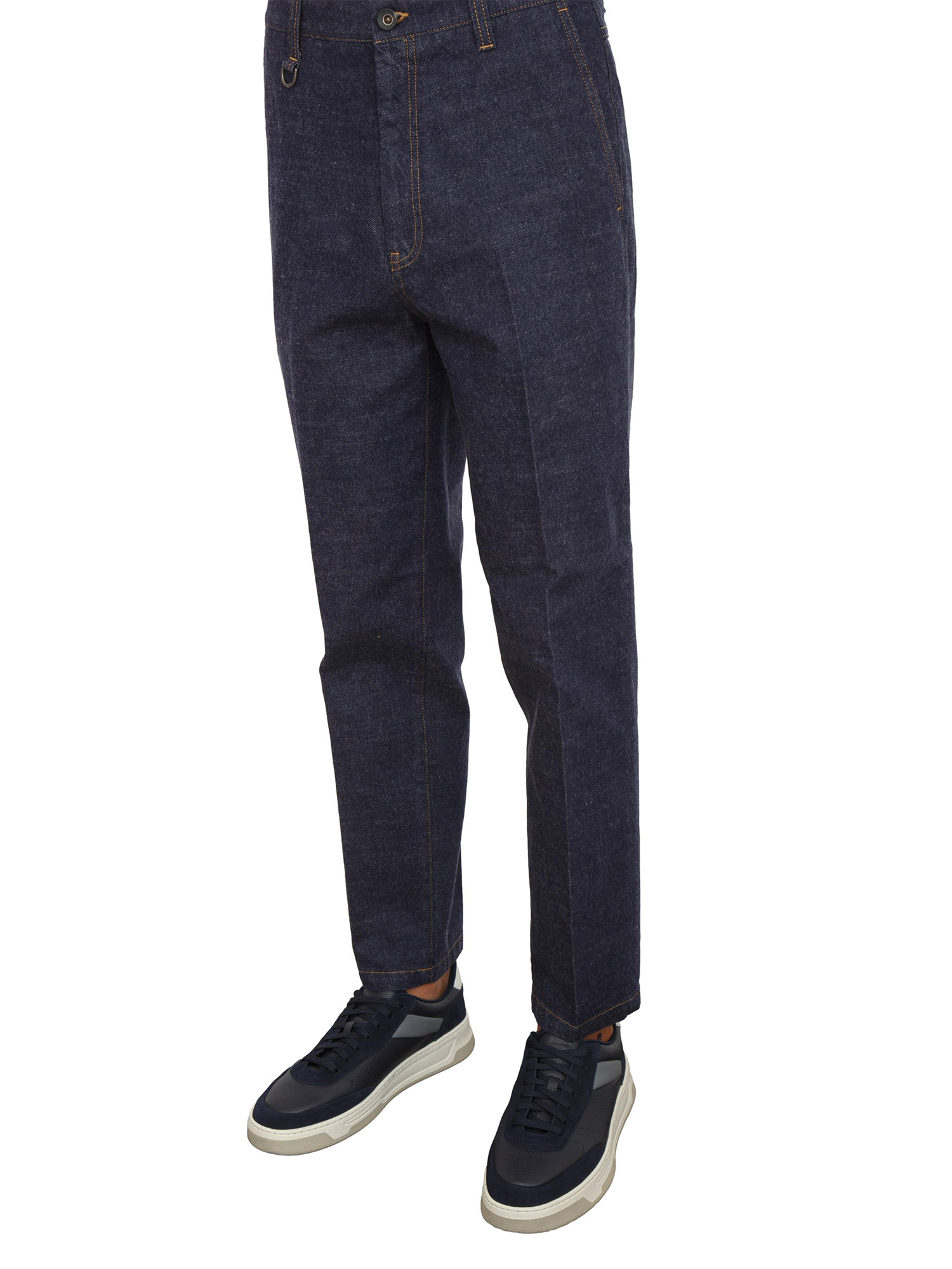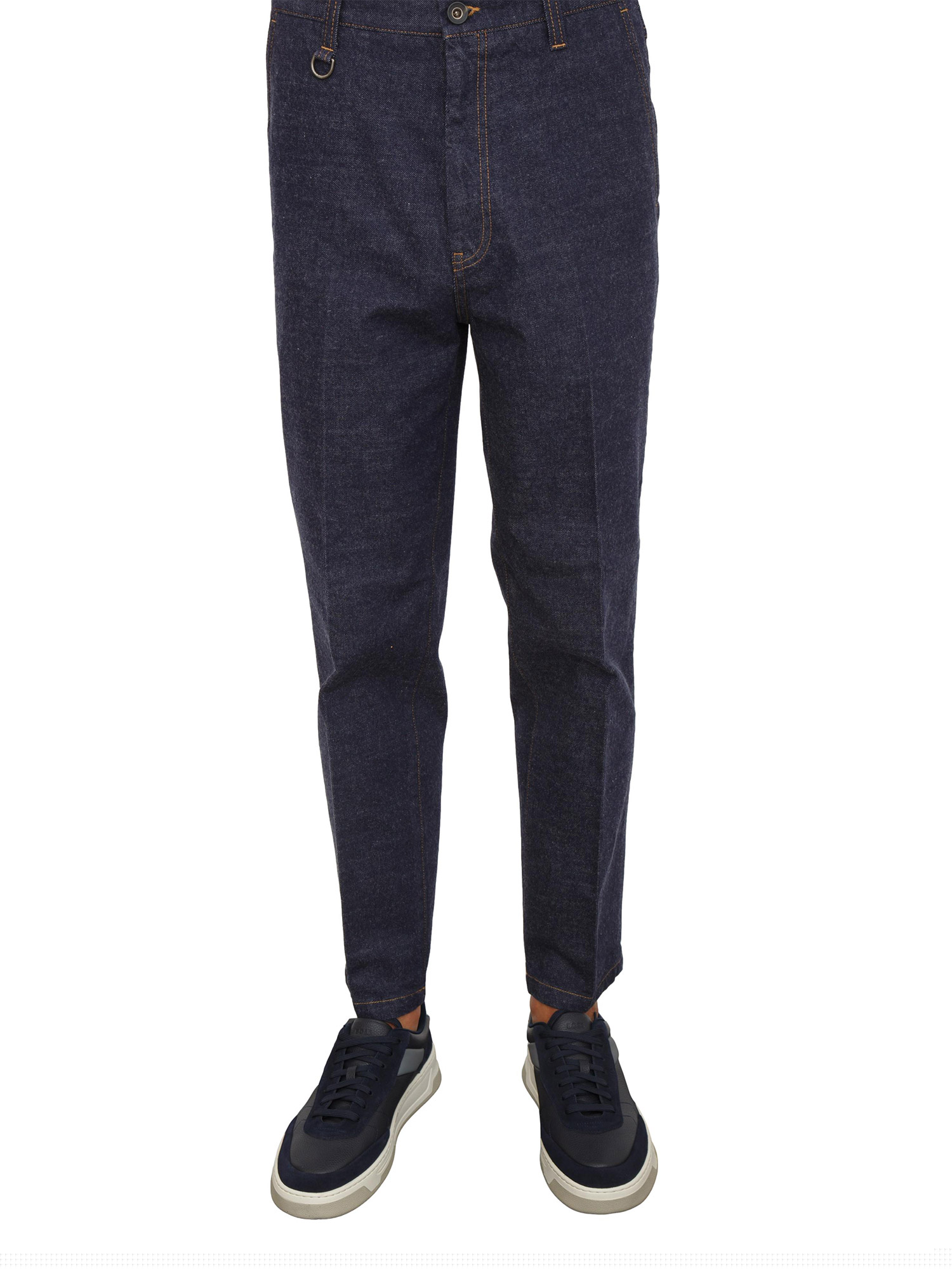 Brand: PAOLO PECORAPantalone chino Paolo Pecora dal taglio relaxed, realizzato in denim di cotone stretch. Il design unisce la linea sartoriale con piega centrale stirata allo stile contemporaneo metropolitano. Perfetto per look casual raffinati o outfit urban-chic. Il modello è alto 1.90m e indossa la taglia 32.